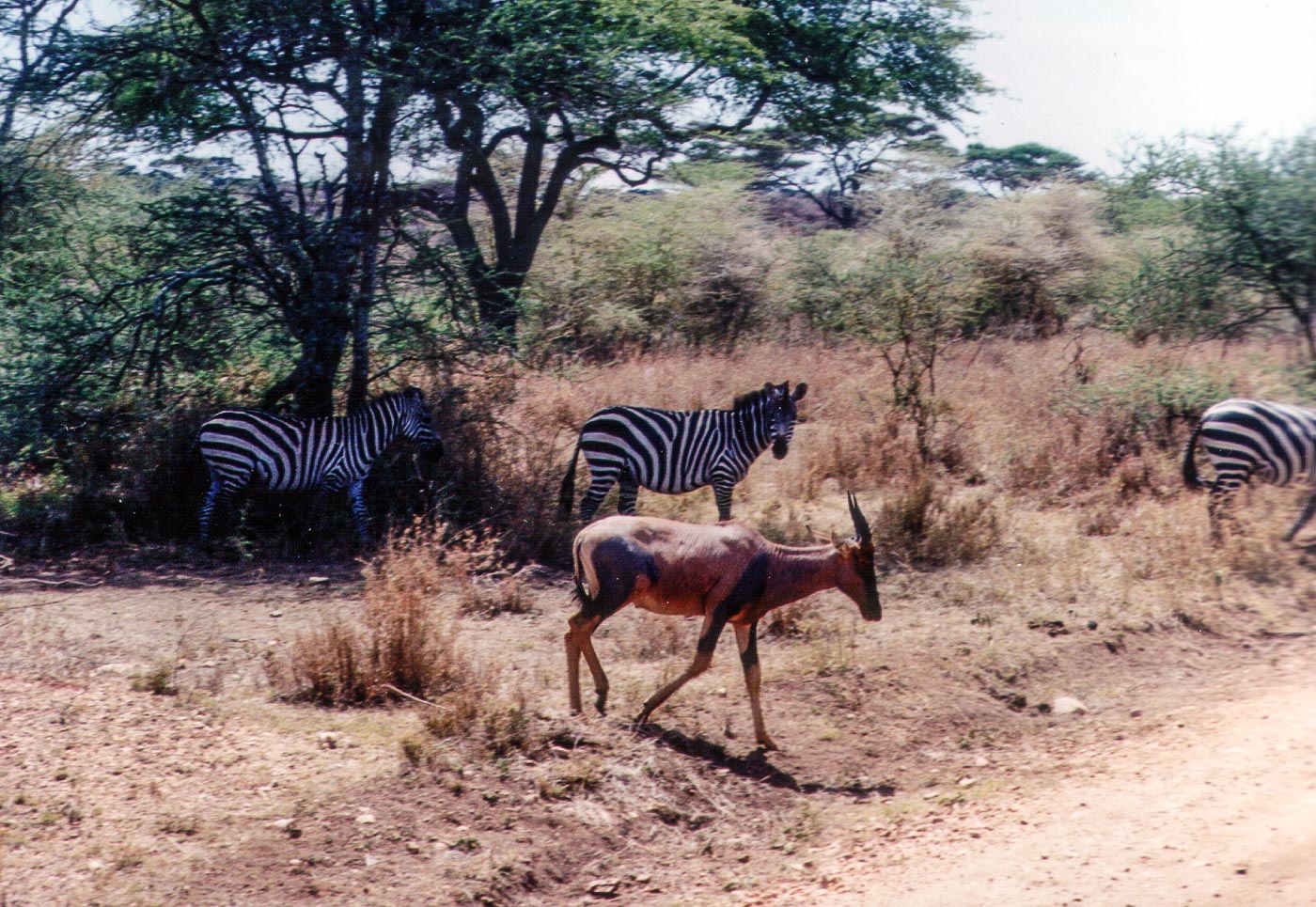 Lets go to safari. The car came for us in time. Driver was only like 10 minutes late and that was excellent in »african« time… Jeep was quite big, made for 4 tourists including the driver, cook and a guide… Well… there were 6 of us, so, we had to squeeze a bit. Other 4 tourists consisted a couple from UK (he did some voluntary work for a few months in a village near Moshi) and two girls from Denmark (quite annoying, but they had an interesting gadget, a digital camera!!!).