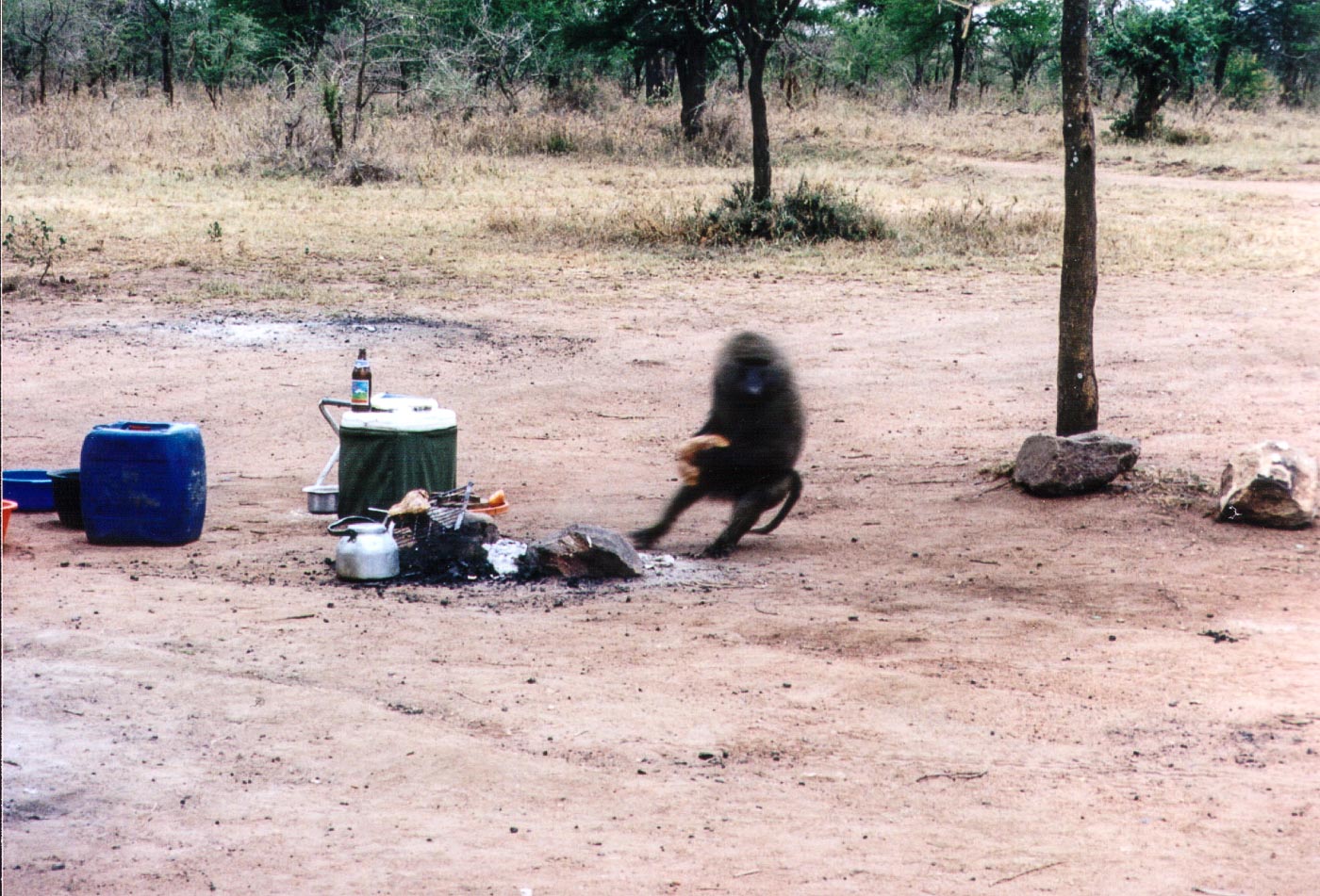 We went on a budget safari and that meant camping… setting your own tent, while all food and drinks is included in the package (ok, you have to bring your own water, and there was no possibility to buy either beer, water or anything else – the last possible place to buy water was at the Serengeti National Park entry gate). We were taken to a camp somewhere in the middle of Serengeti, I have completely no idea where we were… far away from civilization for sure, as the night was really full of shiny stars (and there was no light pollution anywhere close). The camp itself didn’t have any fence, so, this was not the most reassuring thing. But, it should have guards awake (and i stress AWAKE) during the night… Tent was funny… well… a bit on a small side, for two tall guys… but ok, we at least won’t be cold during the night… The night? Well… interesting one… actually, excitement started only then… First of all, all the tents were around a small campfire, where cooks were preparing the food (there were in total some 10-12 tents around). And then we went to sleep… a few minutes later our »guards« went asleep as well… Then the fun started… First came baboons, then hyenas… And they were all trying to get remains of our dinner, which were thrown on the fire (!!!??!). So, the animals started fighting, and were making the most impossible sounds… When they were not fighting you could hear bones crushing sounds… And hyenas… they are just like huge dogs… and as there was no fence, they were passing a few centimeters away from our tents… all that meant an unforgettable show that kept us scared and awake whole night… I shouldn’t forget our guards, guides, drivers, cooks… they were all sweetly sleeping, probably that was like a lullaby for them…