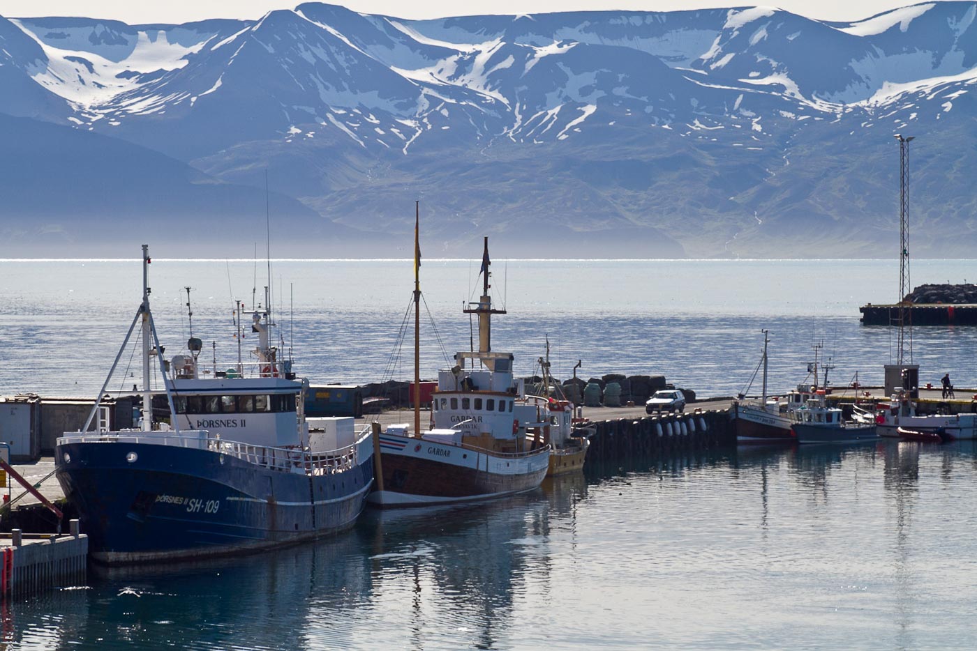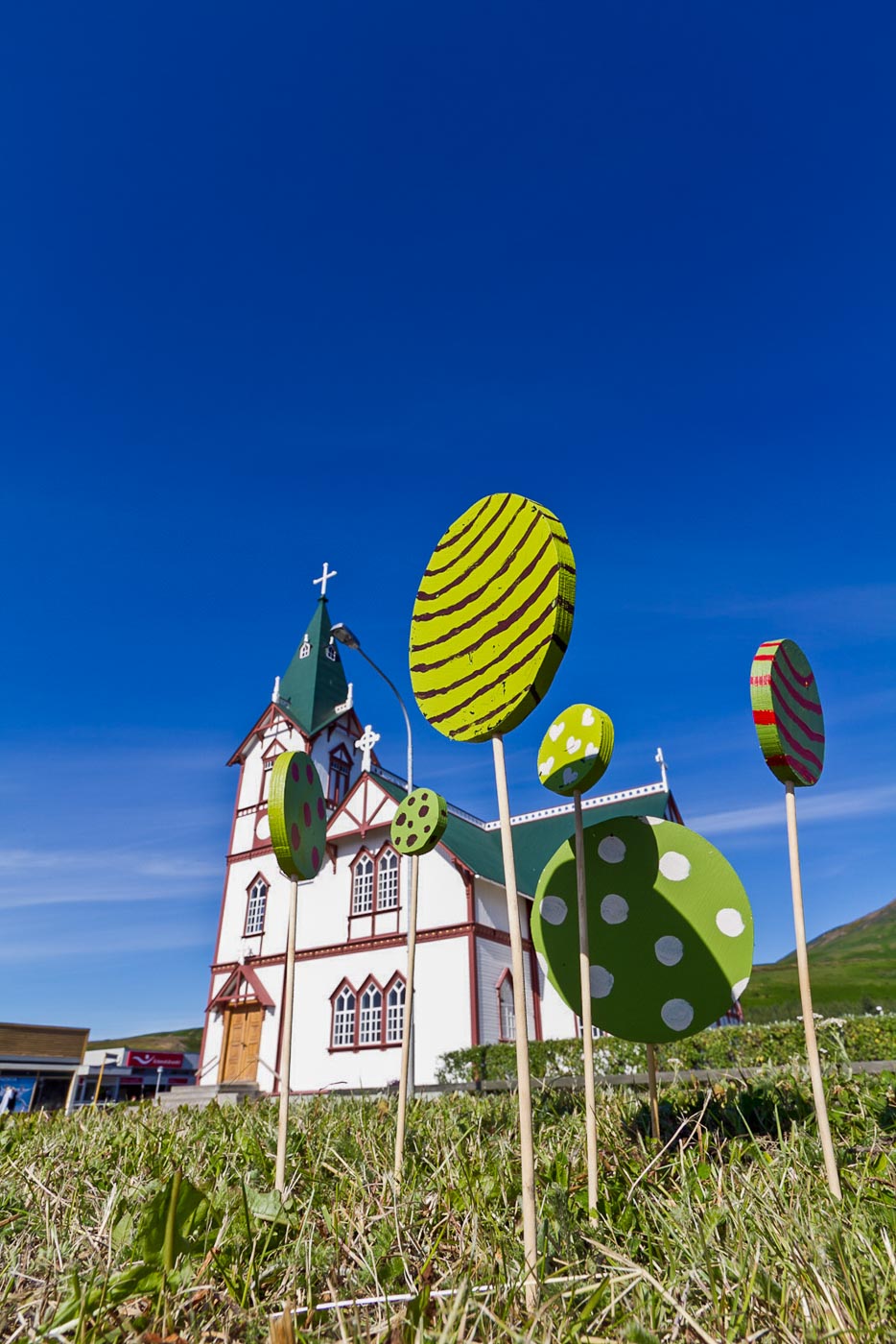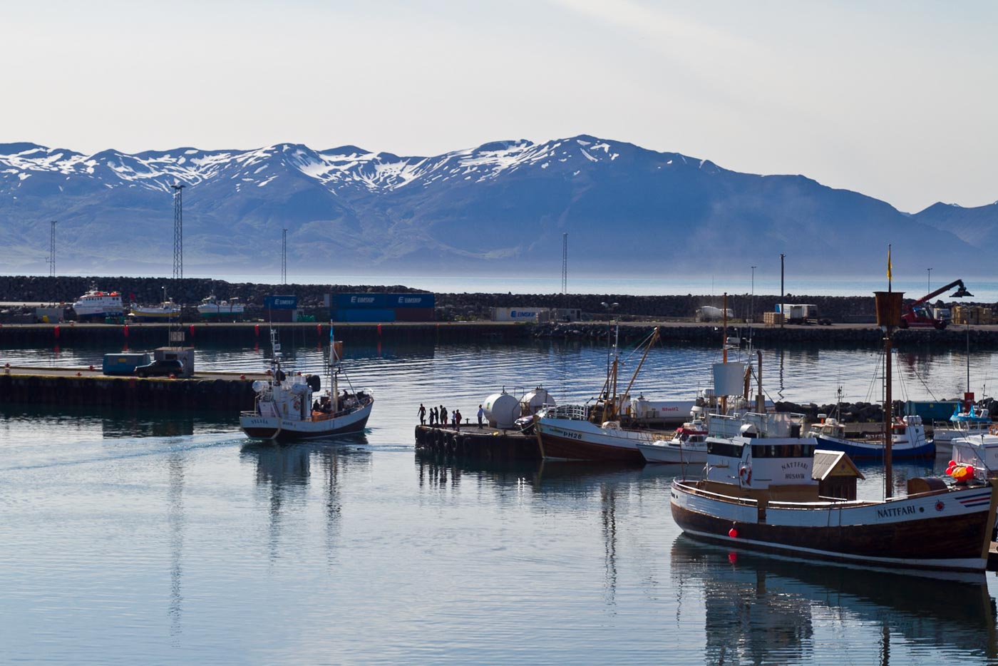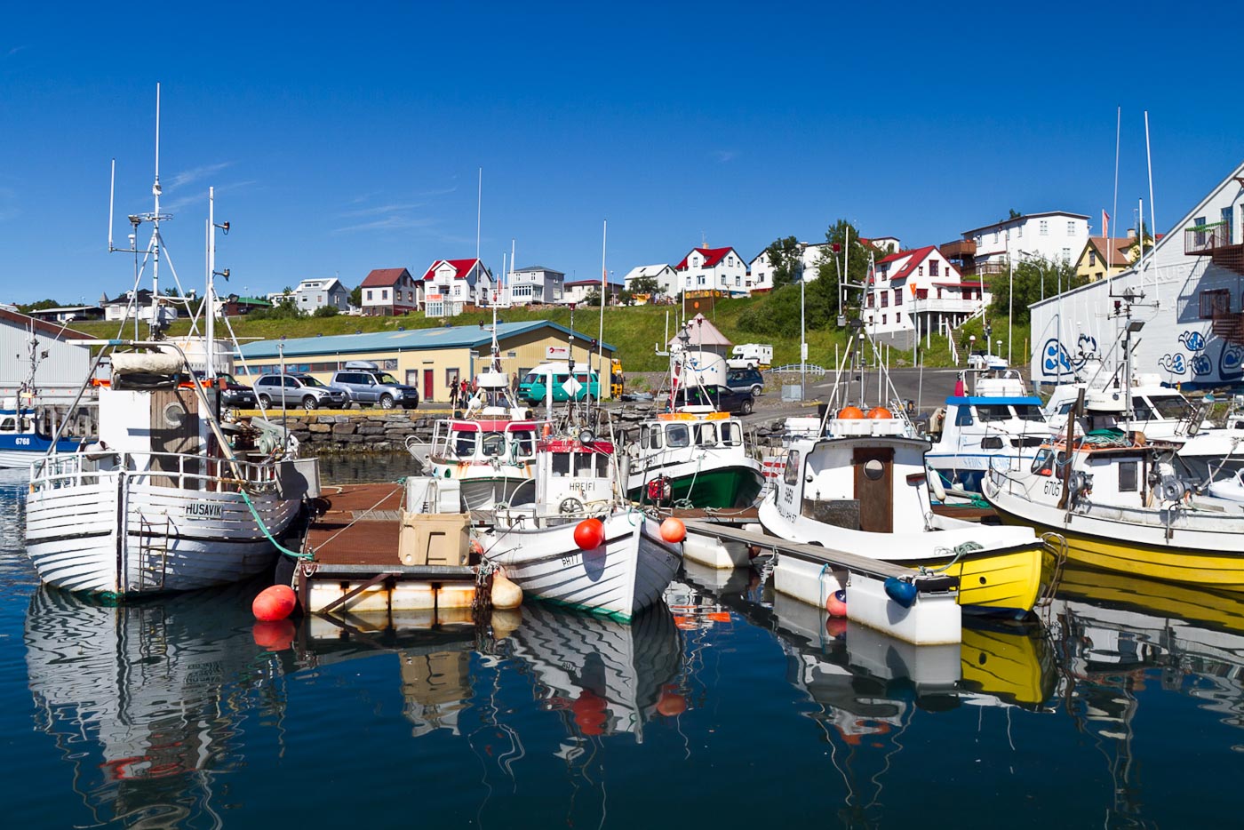Mesto Húsavík leži na vzhodni obali zaliva Skjálfandi (Skjálfandi pomeni tresoč), ki je znan kot prestolnica kitov na Islandiji. V zadnjih letih so bili kiti opaženi na 98 % vseh turističnih izletov. No, kite in njorke smo tudi videli, ni bilo pa tako spektakularno kot sem si predstavljal. Húsavík je tudi mesto prve hiše na Islandiji, ki jo je leta 860 zgradil švedski viking Garðar Svavarsson ter faličnega muzeja.