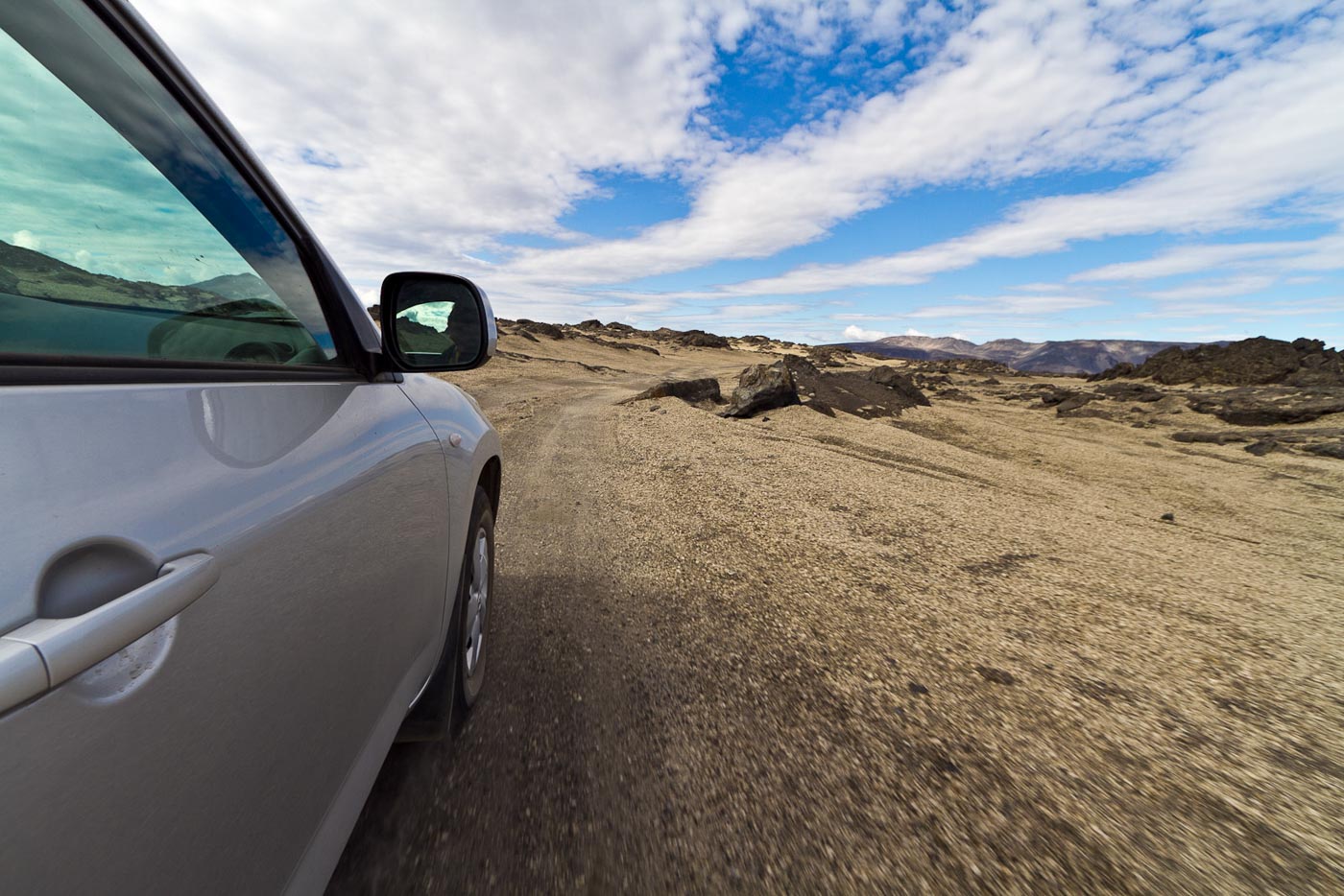 Do Asjke in Vitija ni urejene ceste. No, cesta je (pravzaprav sta od glavne ceste dve cesti), vendar brez ustreznih vozil, sploh pa brez 4×4 niso prevozne. Od ceste št. 1, ki vodi okoli Islandije se odcepita dve t.i. F cesti. F ceste so na Islandiji klasificirane kot off-road gorske ceste, ki so prevozne samo z ustreznimi vozili. Direktna je cesta F88, vendar je tam treba prečkati dve reki, kjer ni mostov in menda predstavlja to problem še celo za manjša in srednja 4×4 vozila. Mi smo tako uporabili bolj “popularno” cesto F905, ki ima par mostov in samo dva manjša prehoda čez reko (kar je brez 4×4 vozila še vedno problematično prevoziti) in se potem priključi na F910 in F894, ki nas pripeljeta na parkirišče v Askji (Vikraborgir). Iz parkirišča je potem še približno pol ure hoje do kaldere. Pokrajina okoli obeh cest je neverjetna in zelo nezemljska. Ni čudno, da je so v tej pokrajini vadili ameriški avstronavti za misijo na luno.