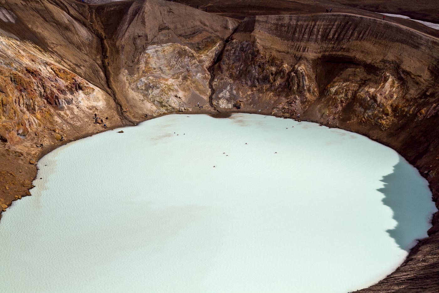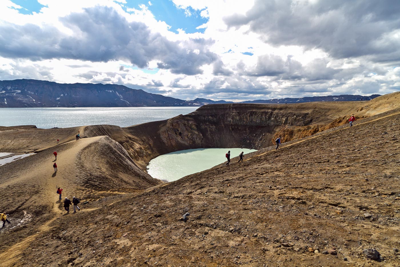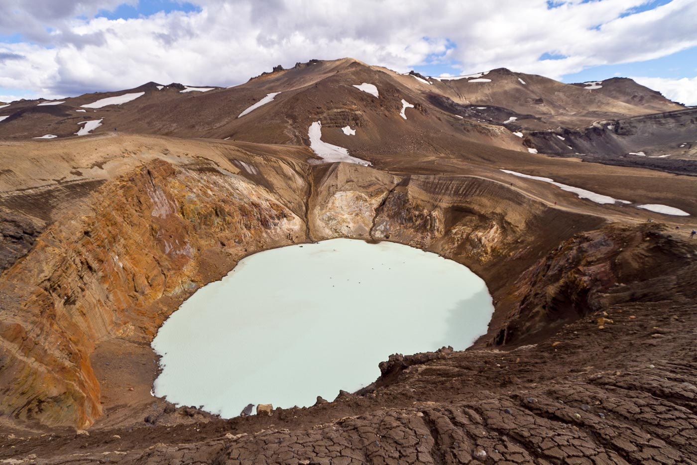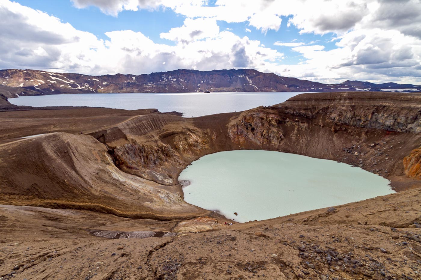 Pokrajina Askja je nastala ob koncu zadnje ledene dobe, ko se je pod slikovitim gorovjem Dyngjufjöll zrušila komora magme.Tako je Askja postala 50 kvadratnih kilometrov velika kaldera znotraj islandskega višavja, skupaj s fantastično pokrajino, mini kraterji in jezeri. Izbruh leta 1875 je povzročil nastanek nove kaldere znotraj večje splošne depresije. Znotraj ene od teh novonastalih kalder je začela pronicati ledeniška voda in sčasoma oblikovala modro jezero Öskjuvatn. To je eno najglobljih jezer na Islandiji (220 metrov), vendar je prehladno za kopanje. Ob jezeru pa je še manjša kaldera Viti, ki ima približno 25 °C, zaradi česar je priljubljena lokacija za popotnike, da se okopajo. supljiv kontrast mirni modri barvi jezer. Zadnji izbruh v Askji se je zgodil jeseni 1961.