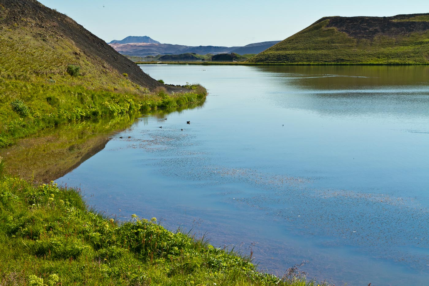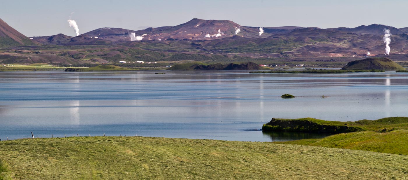 Mývatn je vulkansko jezero s številnimi majhnimi otoki, menda četrto največje jezero v državi. Leži v aktivnem geotermanem območju, kar mu daje edinstven izgled in geologijo. Jezero ni znano samo po naravanih lepotah, ampak tudi po številnih pticah, ki gnezdijo okoli. In poleti je okolica neverjetno zelena.