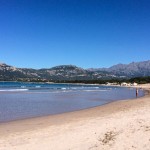 Opoldne je kmalu in greva malo na plažo. Tukaj je prvič morje mirno, da se da v njemu tudi kopati. Kljub soncu (in zunanji temperaturi okoli 25c) pa je mrzlo… Ne vem če ima 20c. Plaža je sicer lepa, vendar moraš kar nekaj časa hoditi v vodo da lahko normalno zaplavaš.