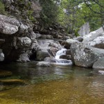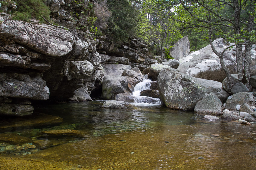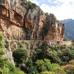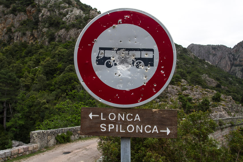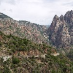 Katerakoli pot sem vodi po nešteto ovinkih. Ampak, preden greva proti severu, zavijeva proti kraju Evisa, ki leži približno 700m visoko. Pot vodi po ozki cesti, polni nepreglednih ovinkov, nad prekrasnimi kanjoni. Med Portu in Eviso je tudi znana pešpot po kanjonu, samo to bo na vrsto prišlo drugič. Pri kraju Evisa, ki je znano po kostanjih, se klima in rastje že počasi spreminja in postaja bolj alpsko. Cesta naprej vodi proti Calviju čez najvišji prelaz na Korziki (1400m nad morjem), ampak midva se po kosilu obrneva nazaj proti Portu, saj sem želel iti v Calvi po krajši, obmorski cesti. No ja… polni ovinkov, prekrasnih razgledov in presteljenih znakih.