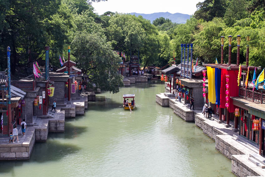 Ko vstopiš na severni strani je tam najprej t.i. Suzhou Market Street. Ob rečici postavljena šoping ulica in restavracije (drugače je vstopnina 10 juanov). Zgraditi jo je dal cesar v 18 stoletju (Qianlong), ki je želel imeti blizu en šoping (vglavnem zabaviščni park) kraj blizu, in to na osnovi ene podobne ulice v kraju Suzhou. Ko je cesar in njegovo spremstvo prišlo na obisk so evnuhi in drugi služabniki igrali stranke in pomočnike v trgovinah, saj je bila ulica očitno bolj navidezna kot prava šoping ulica. Je pa vseeno danes lepo tam. Malo kitajsko kičasto, pa vednar.