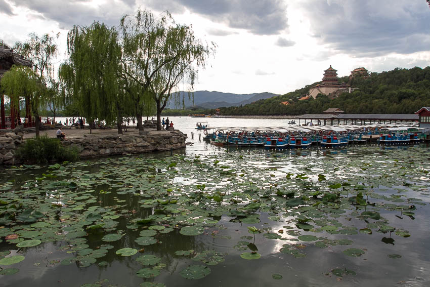 MatevzH_summer-8809Poleti je v Pekingu pogosto zelo vroče. To so ugotovili pred stoletji tudi cesarji. In kam so se umaknili? Ob veliko jezero na severozahodu Pekinga, kjer so si zgradili poletno palačo. V najbolj vročih dneh pa so šli še naprej, v hribe… Danes je pa to največji cesarski park na Kitajskem. Prva palača je bila zgrajena že v 11-12. stoletju, potem so pa v 12. stoletju še zajezili par rek, da je nastalo jezero Kunming.