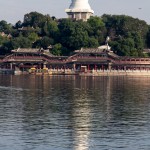 Just as in the the forbidden palace, there is also a Nine Dragon Wall. Just a few steps away are Five Dragon Pavilions from the Ming Dynasty connect with each other via zigzagging bridges. They look out over the lake, and are often filled with competing musical performances. A bit further away is Xiao Xi Tian temple from the Qing Dynasty.