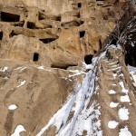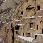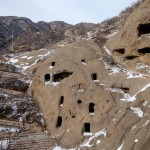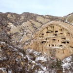 The cave dwellings were carved from the sandstone cliff and are extensive and well-designed, connected by tunnels and stairways, and featuring heated “kang” beds, temples and meeting rooms, and animal shelters on the lower levels. Most of the rooms are three to four cubic meters in size, and some are high up on the cliff face.