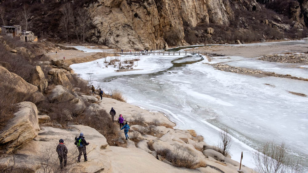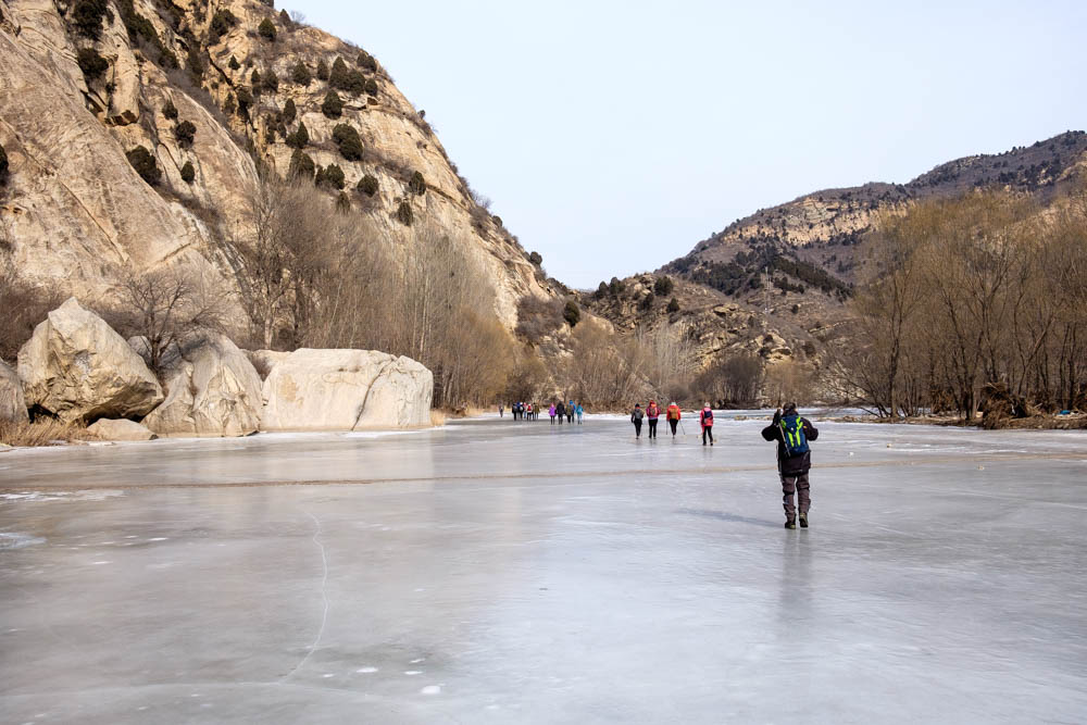 What to do during the spring festival celebrations? One option is of course to visit one of the Beijing parks, where they have large spring festival fairs. Its crowded, and seen once is enough for me. The other option is to go out of city. As it is still quite cold outside (subzero temperatures), a trekking on frozen river seemed like a great idea. At least for me. White river ice hike was organised by Beijing Hikers, and they are really nice agency – mostly catering to western clientele. And this trip would be quite difficult to do by yourself – especially if you are without a car, or don’t want to backtrek a long distance.