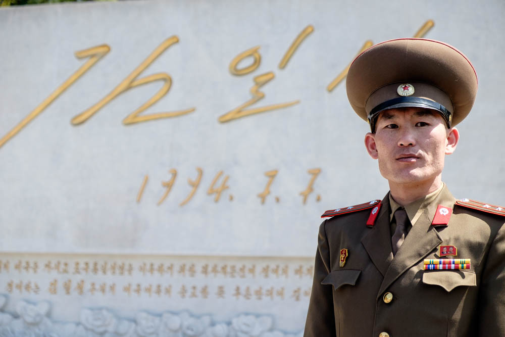 Po približno pol ure smo se lahko vkrcali nazaj na avtobus in nadaljevali pot. Aja, vsak avtobus je dobil tudi severnokorejskega vodiča – vojaka. Naš je imel kar visok čin, in je razlagal različna dejstva (in severnokorejski pogled na vojno). Kljub dejstvu, da ni govoril angleško (prevajala je naša vodička) je bil zelo dostopen in pripravljen odgovarjati na vprašanja. Ob poti se seveda vidijo protitankovske ovire, globok jarek z bodečo žico (in verjetno minami) ter “no-mans-land”, ki ga prerašča narava. V daljavi se seveda vidita obe zastavi. Ena višja od druge, in severnokorejci se radi pohvalijo, da je njihova zastava najvišja na svetu. Na obeh stran DMZ sta tudi vasi – nismo se seveda mogli preveriti, ampak južnokorejci pravijo, da je severnokorejska vas samo kulisa. Prva postaja je bil manjši muzej, ki je bil bil v stavbah, kjer je bil podpisan armistice. Kakšen kilometer naprej pa je bil Panmunjeom, kjer tudi stojijo tiste slavne modre barake, ki so pod jurisdikcijo Združenih narodov. No, zraven je še nekaj podobnih stavb (v beli barvi), ki pa nimajo vhoda iz obeh strani in seveda niso odprte za javnost. No, in to je bilo to. V modro stavbo (kjer lahko z nekaj koraki greš na južno stran in obratno) žal nismo šli, saj tisti dan ni bila odprta za javnost (tudi turistov na južnokorejski strani ni bilo). To se občasno zgodi in seveda je severnokorejska stran obtožila drugo stran, da tisti dan ne dovoli. Predvidevam, da je na južnokorejski strani podobno obtoževanje nasprotne strani. Vglavnem… sej je pravzaprav vseeno. Zanimivo pa je bilo, da se ni videlo vojakov na južni strani in predvidevam, da je podobno tudi iz južnokorejske strani. Na vsaki strani, nedaleč od barak je na vsaki strani meje velika stavba, od koder je razgledna točka (za turiste) na drugo stran. Je bilo pa to tudi mesto, kjer so po treh dneh številni izkoristili možnost GSM “signala” iz južne strani in seveda veselo pošiljali in sprejemali sporočila (sam se pozabil v Pekingu slovenski SIM, ki kitajski mi pa izven kitajske ne dela). Verjetno je bil za mnoge to highlight dneva in ne sam obisk meje.