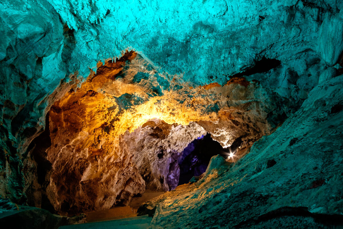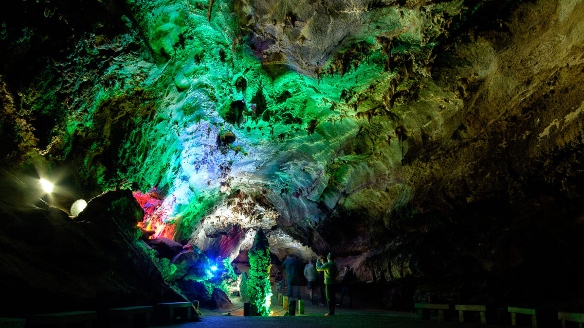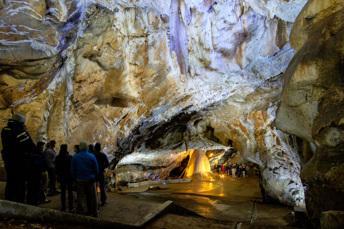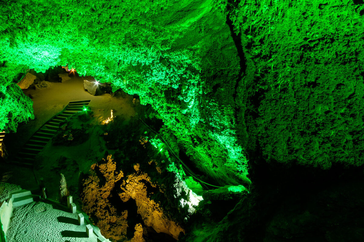 Naša vodička je bila oblečena v rdečo trenerko, ki je bila pravzaprav veliko nasprotje zelo lepo urejenim vodičem v Pyongyangu. Ne glede na to je bila super – polna “zanosa” in “ponosa”, njene razlage so bile polne simbolike in hkrati tudi rahlo “nekorektne”. No, vse to sklepam, ker ni znala niti besedice angleško. Ampak z mahanjem je pokazala svoj zanos, našo severnokorejsko vodičko pa je večkrat spravila v zadrego (ki jo je pokazala s tem, da je lepo zardela). Ampak ja, presenetljivo (in od teh jam res nisem pričakoval veliko) je bil obisk super. Raznolike formacije, veliko simbolike, podzemni slap,… Vse to je dopolnjevala zelo živa in barvna osvetlitev. No, hkrati se je vodička premikala kar hitro (jame so velike) in je zelo vestno in sproti ugašala luči. In parkrat je polovica skupine obtičala v temi 🙂