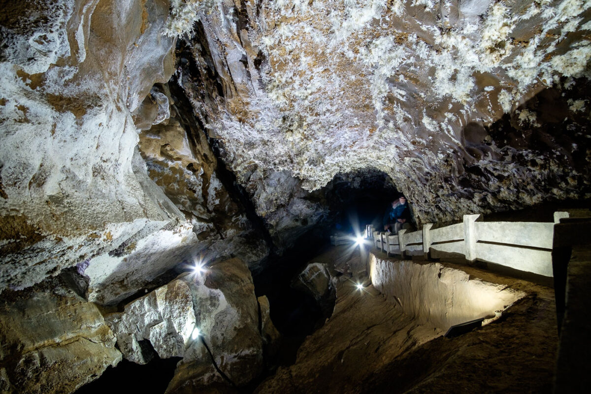 Pred prihodom v DPRK nisem vedel, da je tukaj prava apnenčasta pokrajina in tudi veliko jam. In ja, oni so iz teh jam naredili prave znamenitosti. Ena izmed njih je Ryongmug, ki je oddaljena pribiližno dve uri vožnje iz Pyongyanga (proti severu). Ima dve glavni dvorani in več deset manjših, povezovalnih. Tako kot druge znamenitosti jo je obiskal tudi Kim Il Sung (leta 1996) in jo proglasil za spektakularno in je seveda dal natančna navodila za upravljanje z jamo in kako jo narediti privlačno za obiskovalce. Menda mu je bila tako všeč, da je sprejel vse ukrepe da jo je spremenil v turistično destinacijo. In res.. menda je danes popularna med domačimi in tujimi turisti.. menda… ker ob našem prihodu drugih turistov ni bilo.