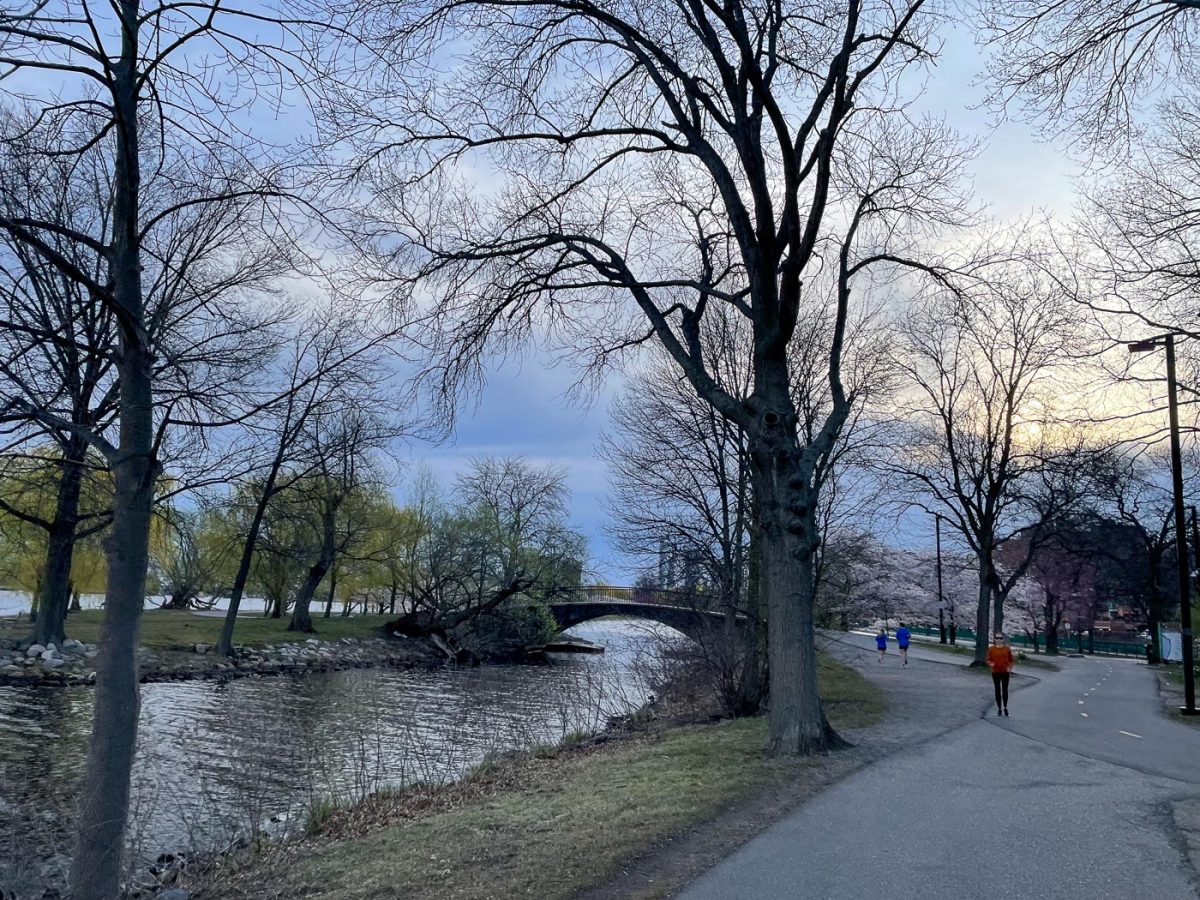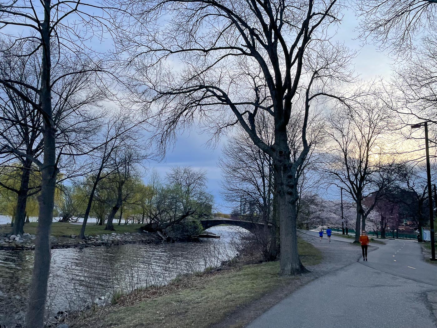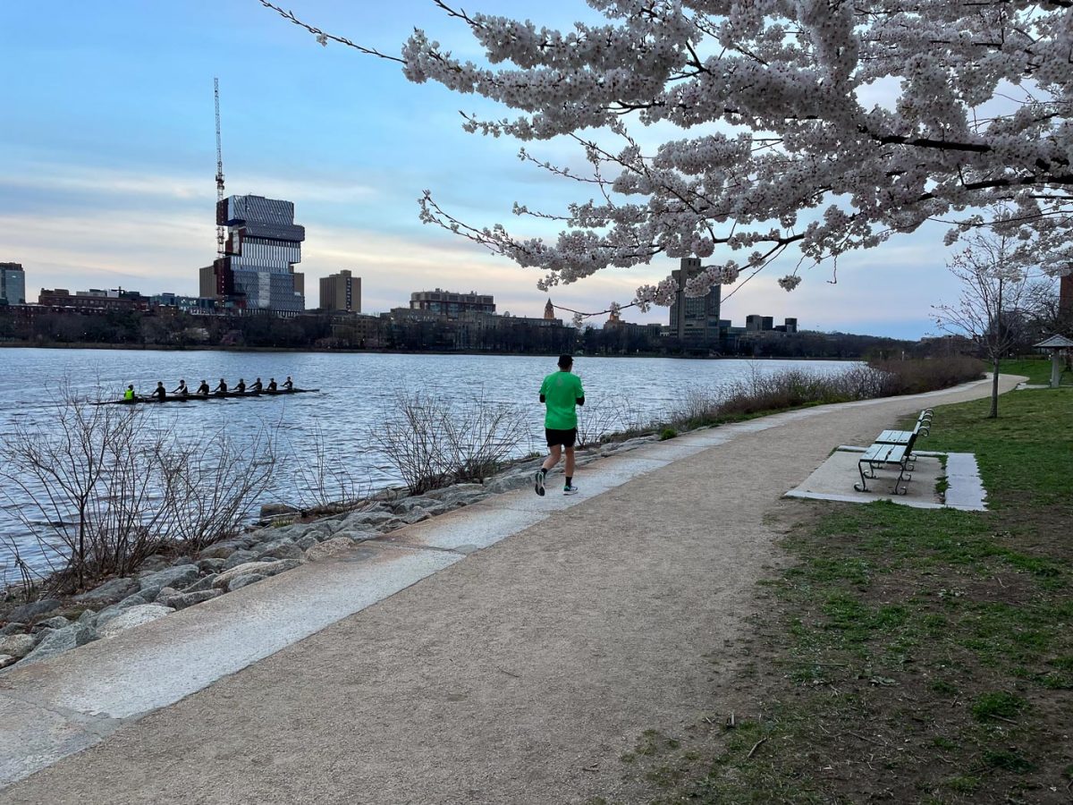 Prvo jutro v Bostonu. Jetlag. Maraton čez par dni. Ideja je padla, in z Urošem greva seveda na tekaški ogled mesta. Na izi. Fotografsko. Mimo univerze MIT, ob reki mimo veslaških treningov (tako Harvarda kot tudi Bostonske univerze), malo proti downtownu in potem ob reki in prekrasnih tekaških potkah in parkih nazaj. Ja, lokacija našega hotela ni slaba.
