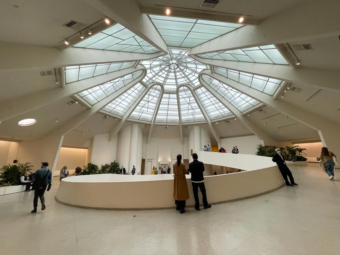 Muzejska zbirka je rasla v osmih desetletjih in temelji na več pomembnih zasebnih zbirkah, začenši z zbirko Solomona R. Guggenheima. Zbirko delijo s sestrskimi muzeji v Bilbau v Španiji in drugod. Stalna zbirka, ki je bila predstavljena na spiralnem delu je vključevala dela Vasilija Kandinskega. Postavljeno je bilo kronološko in je bilo zanimivo opazovati kako sta se spreminjla njegov navdih in izražanje, bom pa takoj priznal, da mi je bila sčasoma vse skupaj preveč abstraktno. Začasna zbirka je bila bolj po mojem okusu in je bila Gilian Wearing: Wearing Masks. Vseeno mi je bila zvezda celotne razstave sama stavba. Muzej sva si ogledala tako, da sva šla po “stranskih” sobah navzgor in potem po spiralnem delu navzdol.