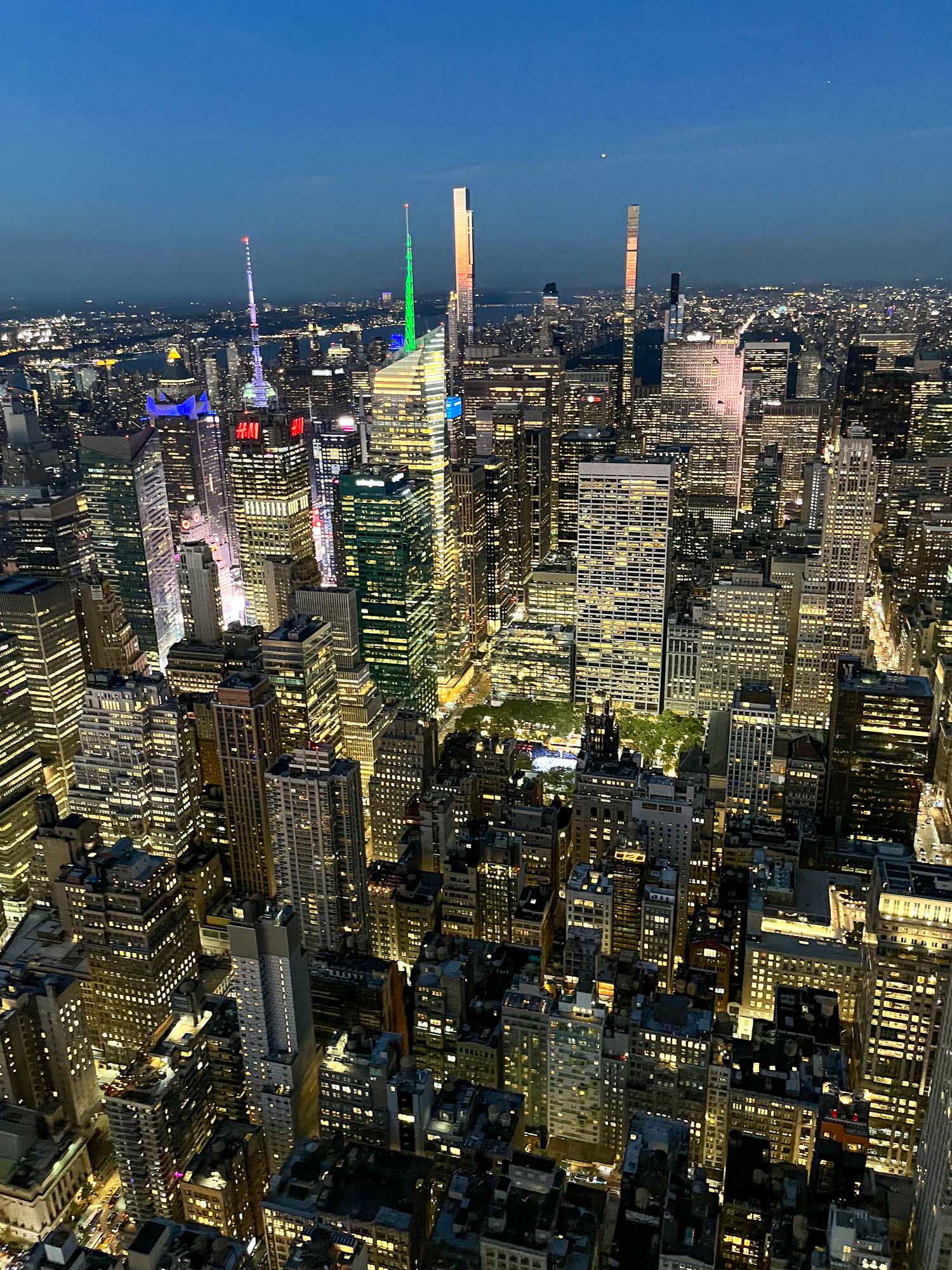 Razgled je res lep in vidi se v vse smeri odlično. No. Skoraj. Proti Central park sedaj pogled zakrivajo ozki in visoki nebotičniki na t.i. milji miljarderjev. Pa samega stolpa se ne vidi iz stolpa 🙂 Ogled je, ob muzeju, sicer vreden ogleda, ampak pravzaprav lepši pogled je iz “the rock”, sosednje Rockefeller stavbe – ki je malo nižja a ima prekrasen pogled tudi na Empire State Building.