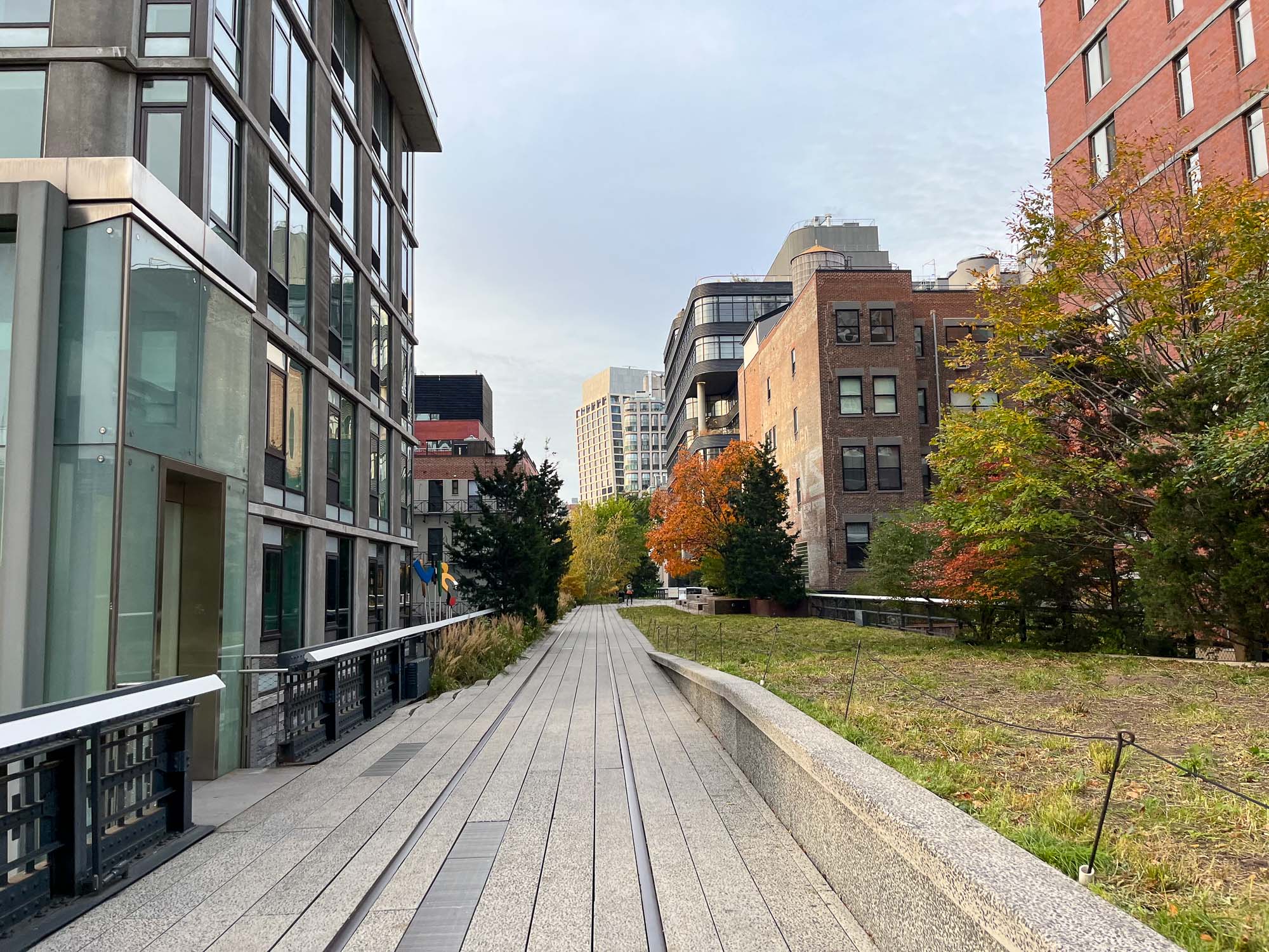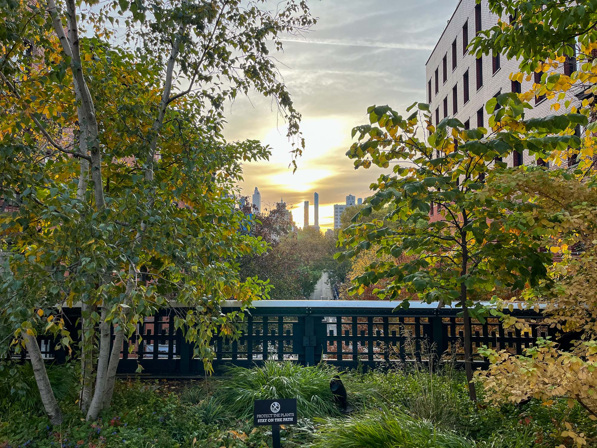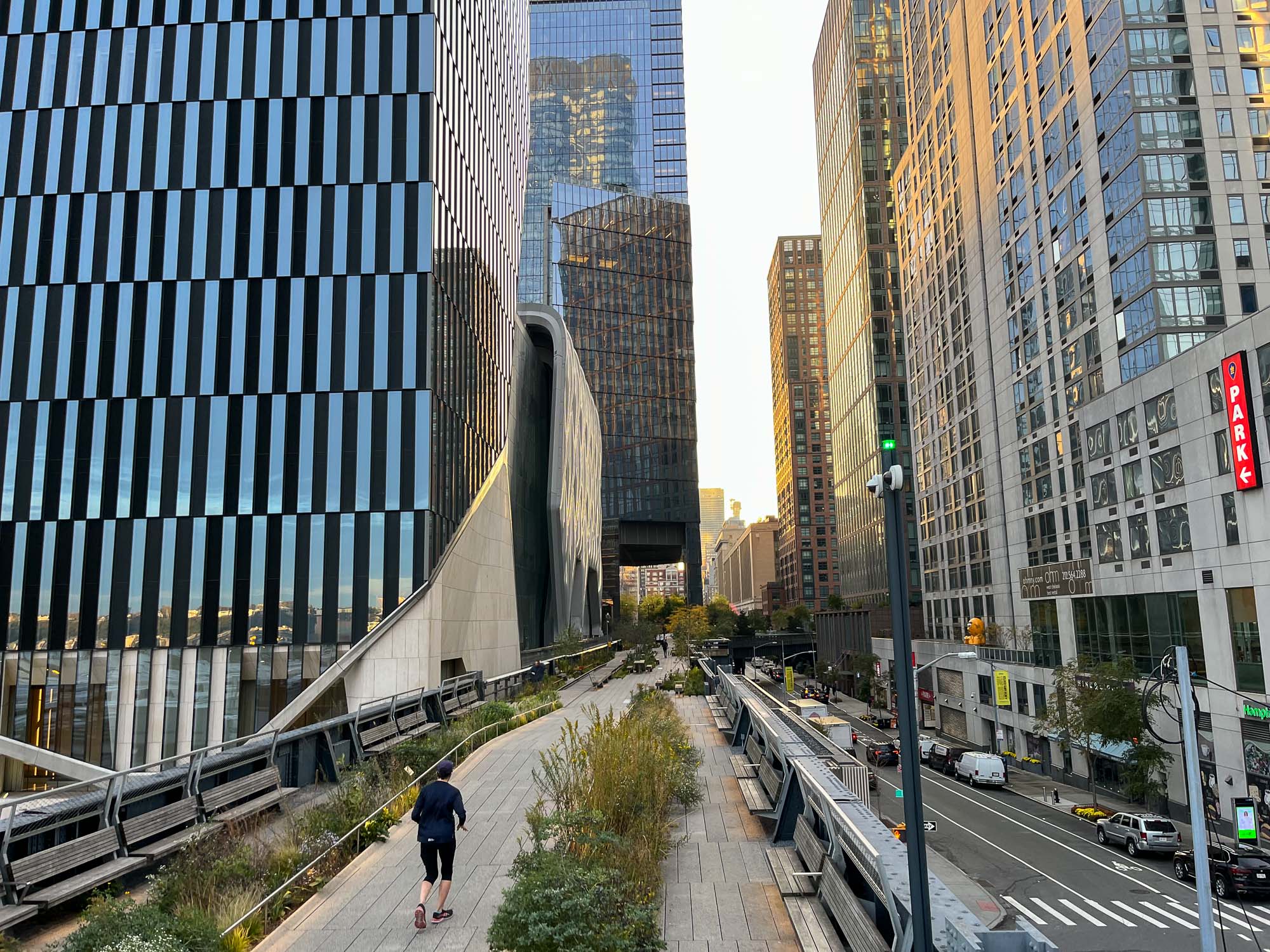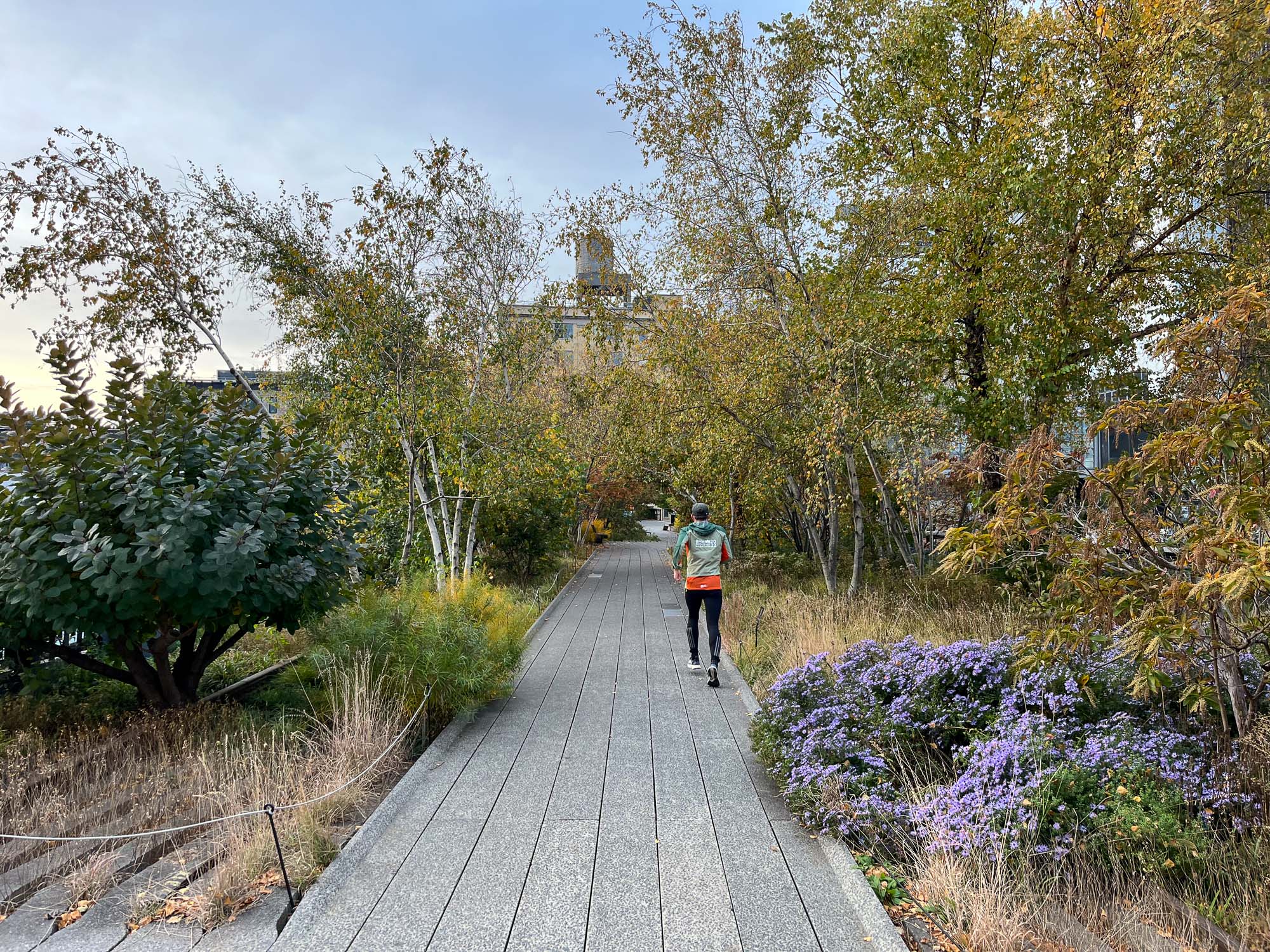 High Line je javni park, zgrajen na zgodovinski trasi tovorne železniške proge, dvignjene nad ulicami na zahodni strani Manhattna. Ni dolg, samo okoli 3km in se razsteza od Hells Kitchen do Chelsea. Park so leta 2009 odprli kot hibridni javni prostor, kjer obiskovalci doživijo naravo, umetnost in dizajn. In ja, super prostor za jutranji tek (čez dan je sigurno preveč ljudi naokoli)