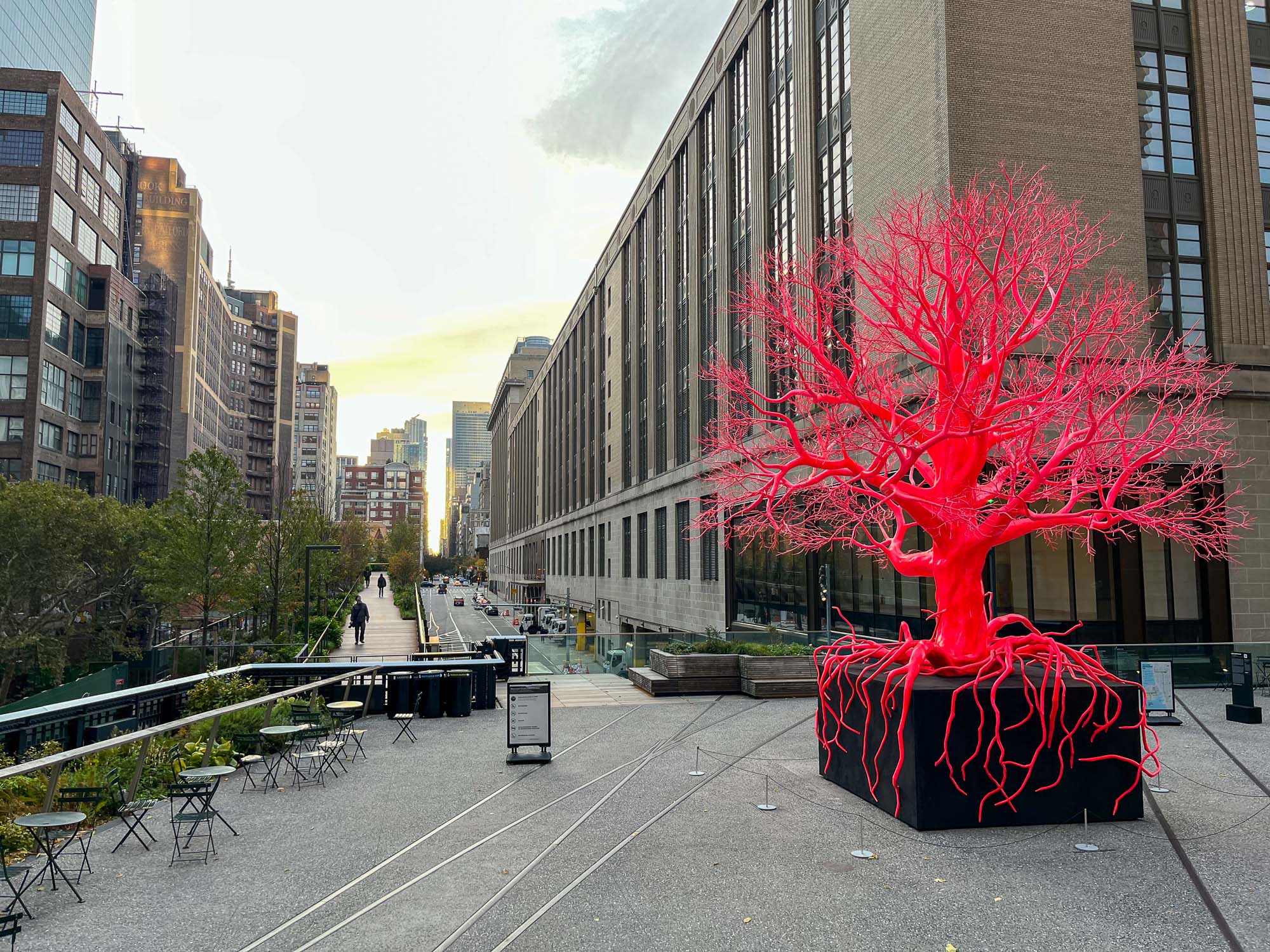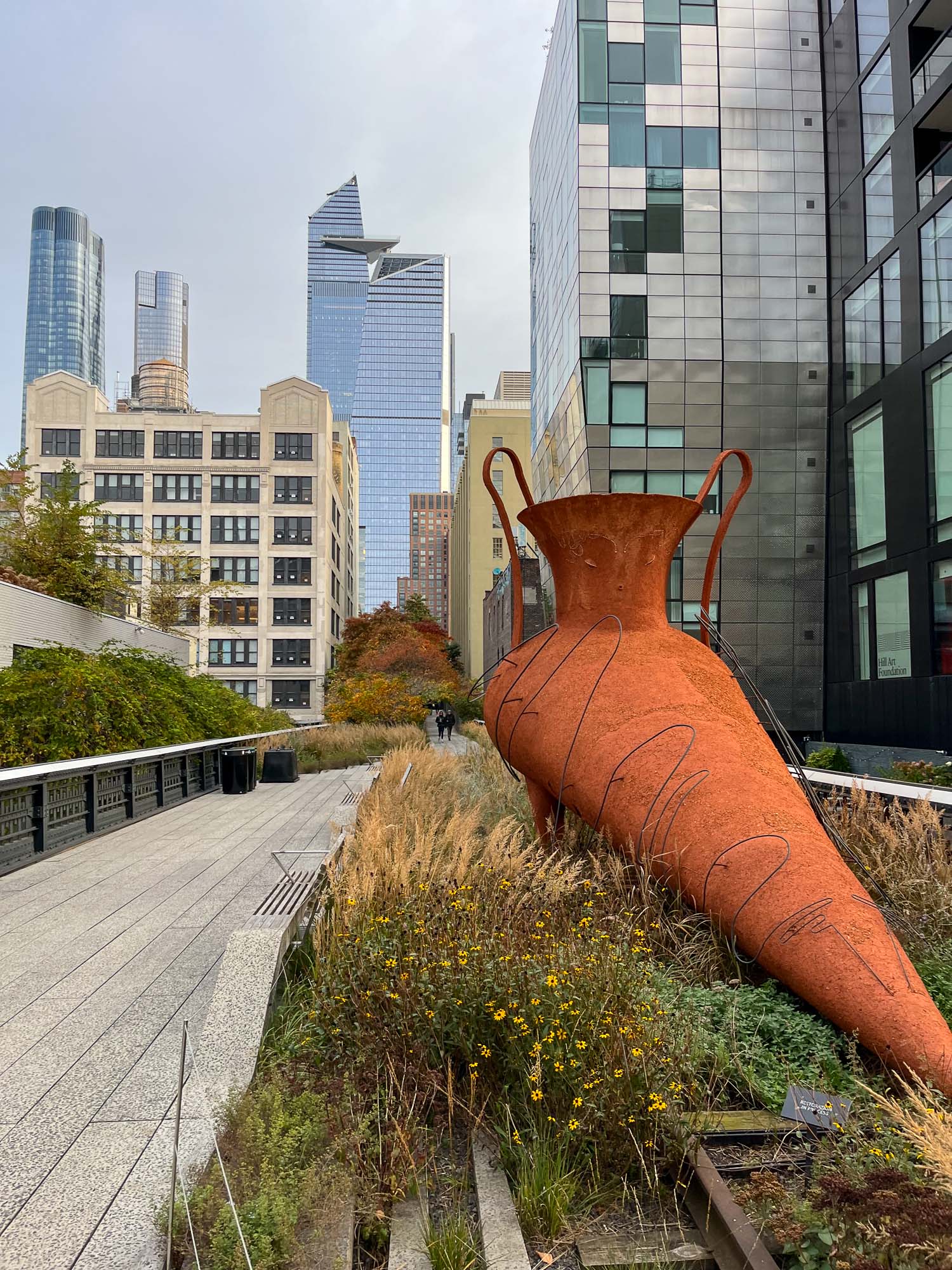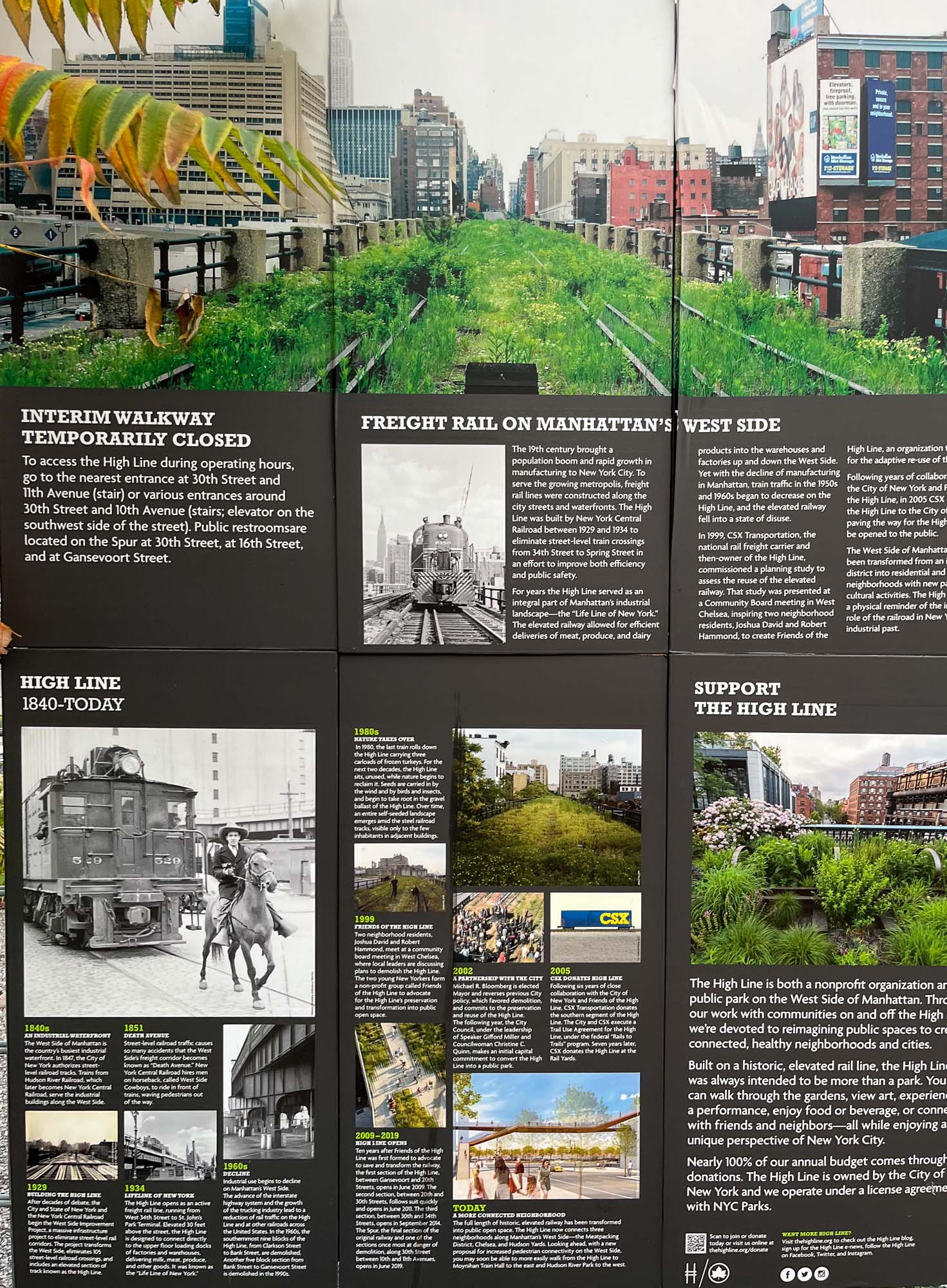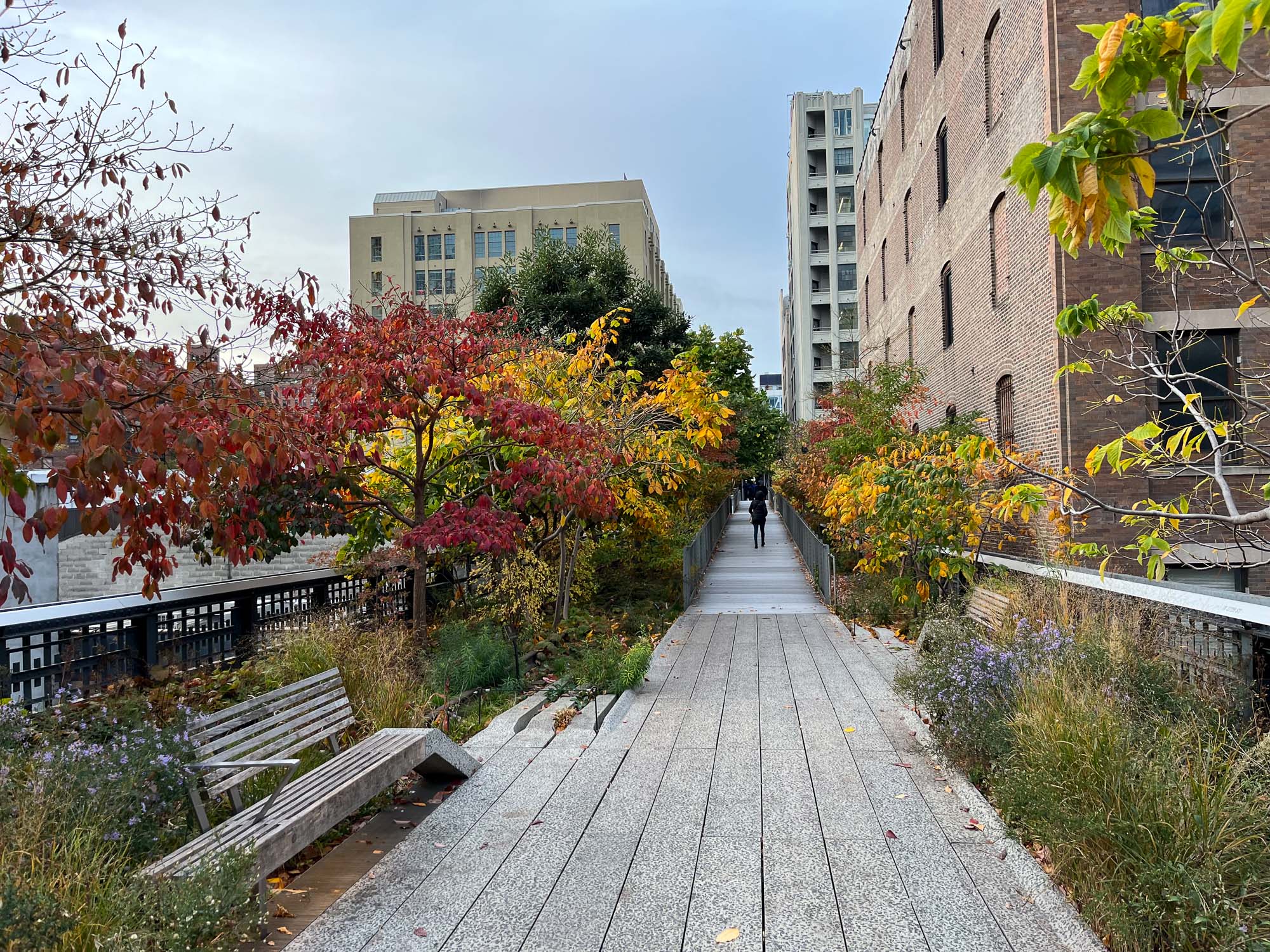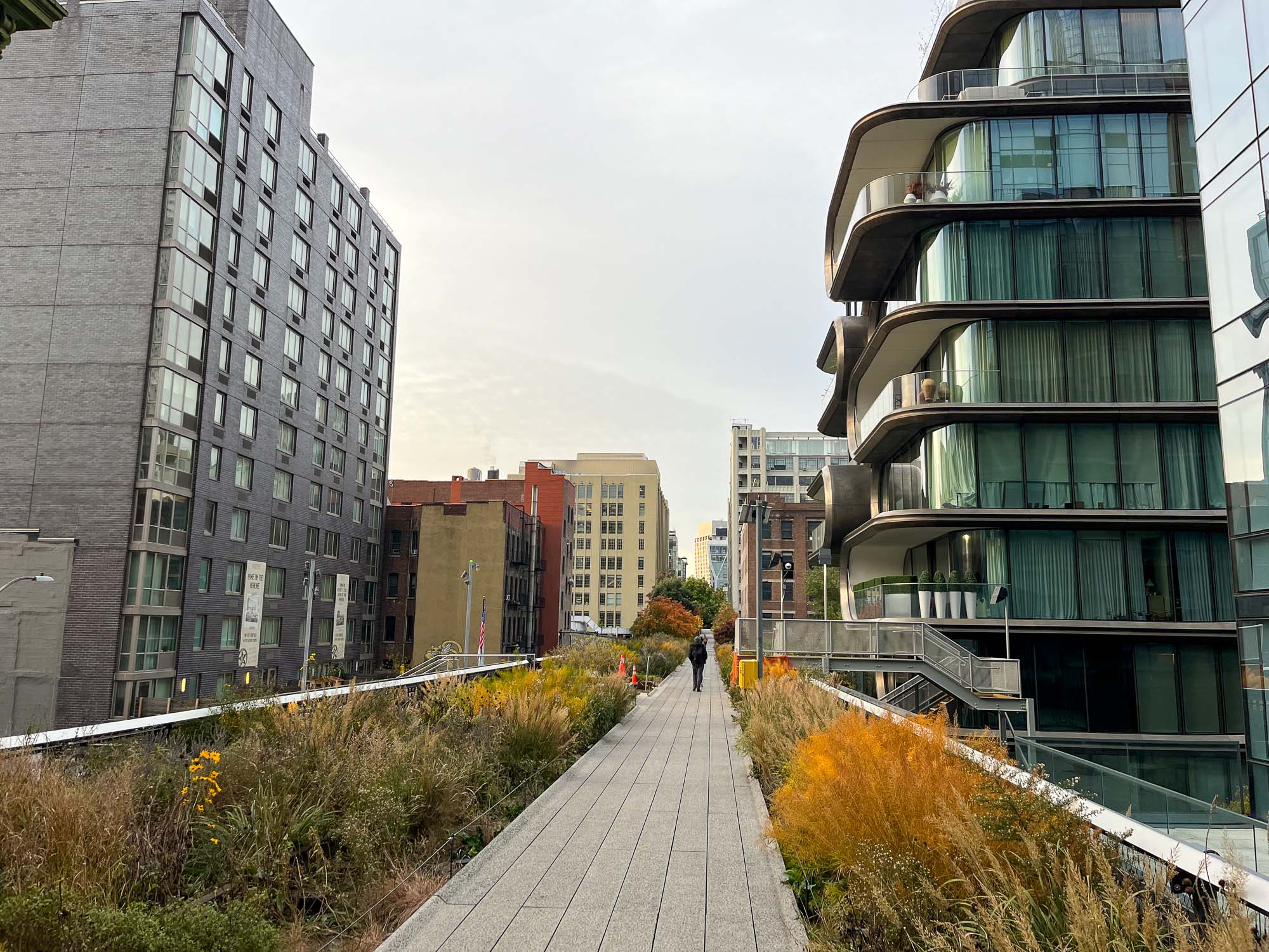 High Line je javni park, zgrajen na zgodovinski trasi tovorne železniške proge, dvignjene nad ulicami na zahodni strani Manhattna. Ni dolg, samo okoli 3km in se razsteza od Hells Kitchen do Chelsea. Park so leta 2009 odprli kot hibridni javni prostor, kjer obiskovalci doživijo naravo, umetnost in dizajn. In ja, super prostor za jutranji tek (čez dan je sigurno preveč ljudi naokoli)