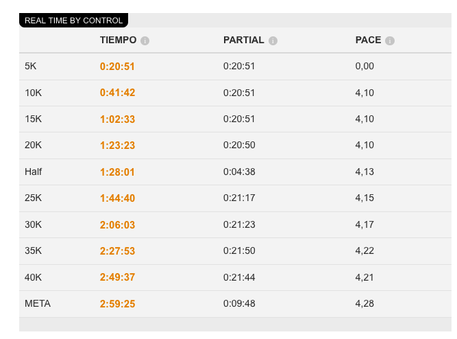 Čas je bil na koncu (vsaj zame) odličen. Cilj pod 3h je bil dosežen s časom 2h59m25s. druga polovica malo počasnejša, ampak razlika ni bila prevelika. Ko gledam nazaj bi verjetno na ta dan, ko je se vse poklopilo (še čevlji so zdržali), šlo hitreje 2-3 minuti.. ampak to res res ni bilo v planu.