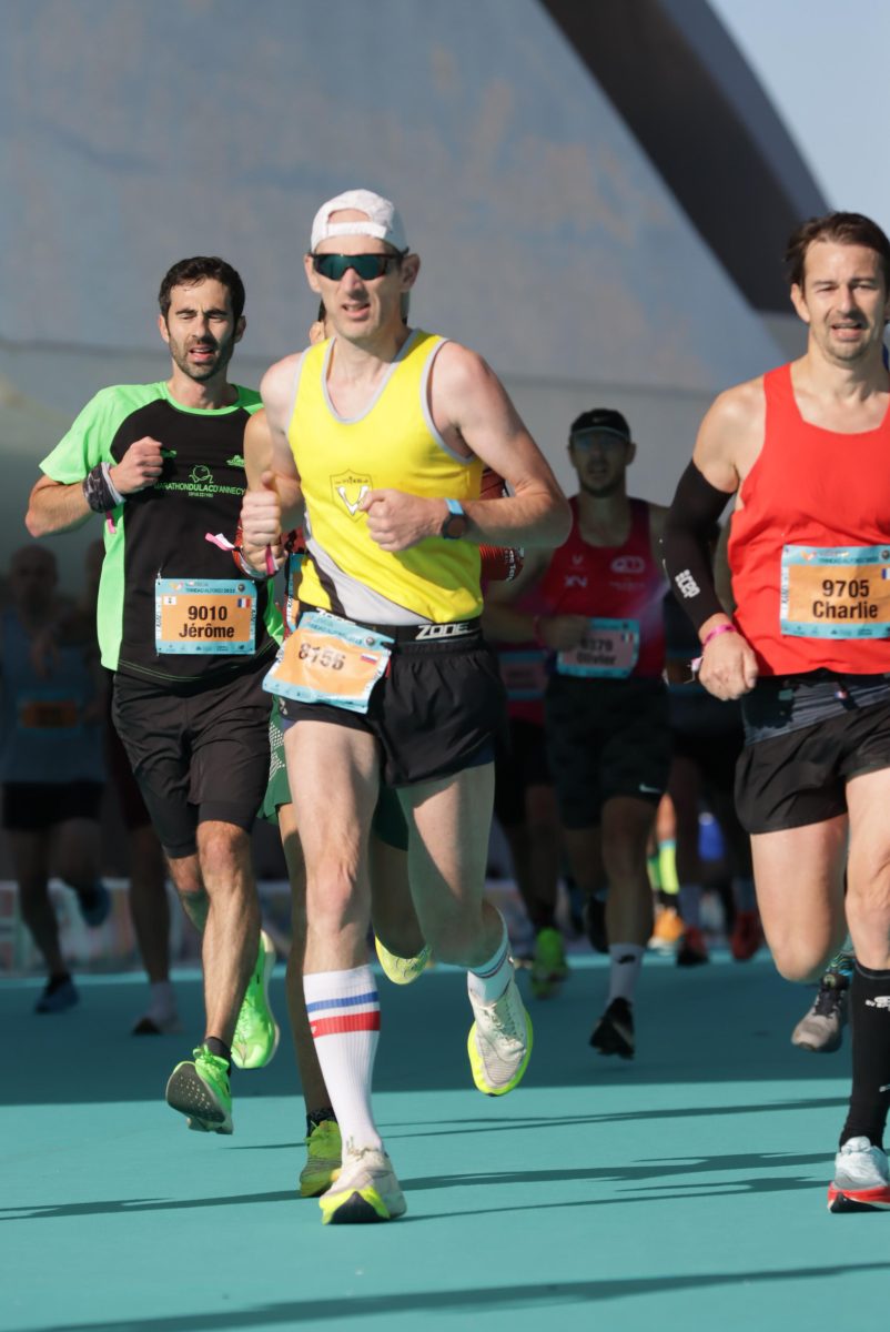 Ko sem prišel v Valencijo je bilo zelo toplo za ta letni čas in petkov jutranji tek je bila prava muka – prevroče. Napoved za naslednje dni je bila sicer idealna – lepo, sončno vreme in ohladitev. In tako je tudi bilo na dan maraton. Spet sem izbral “ta hitre” Nike Vaporfly in si rekel kar bo bo. Tudi ahilova tetiva se nič ne pritožuje v njih. Sicer se je zjutraj, pred začetkom maratona zgodila mala nesreča – opazil sem, da se je podplat nekoliko odlepil – in to po manj kot 100 pretečenih km. In hkrati mi je vse dol padlo, saj sem pričakoval “gumi” defekt in posledično odstop.