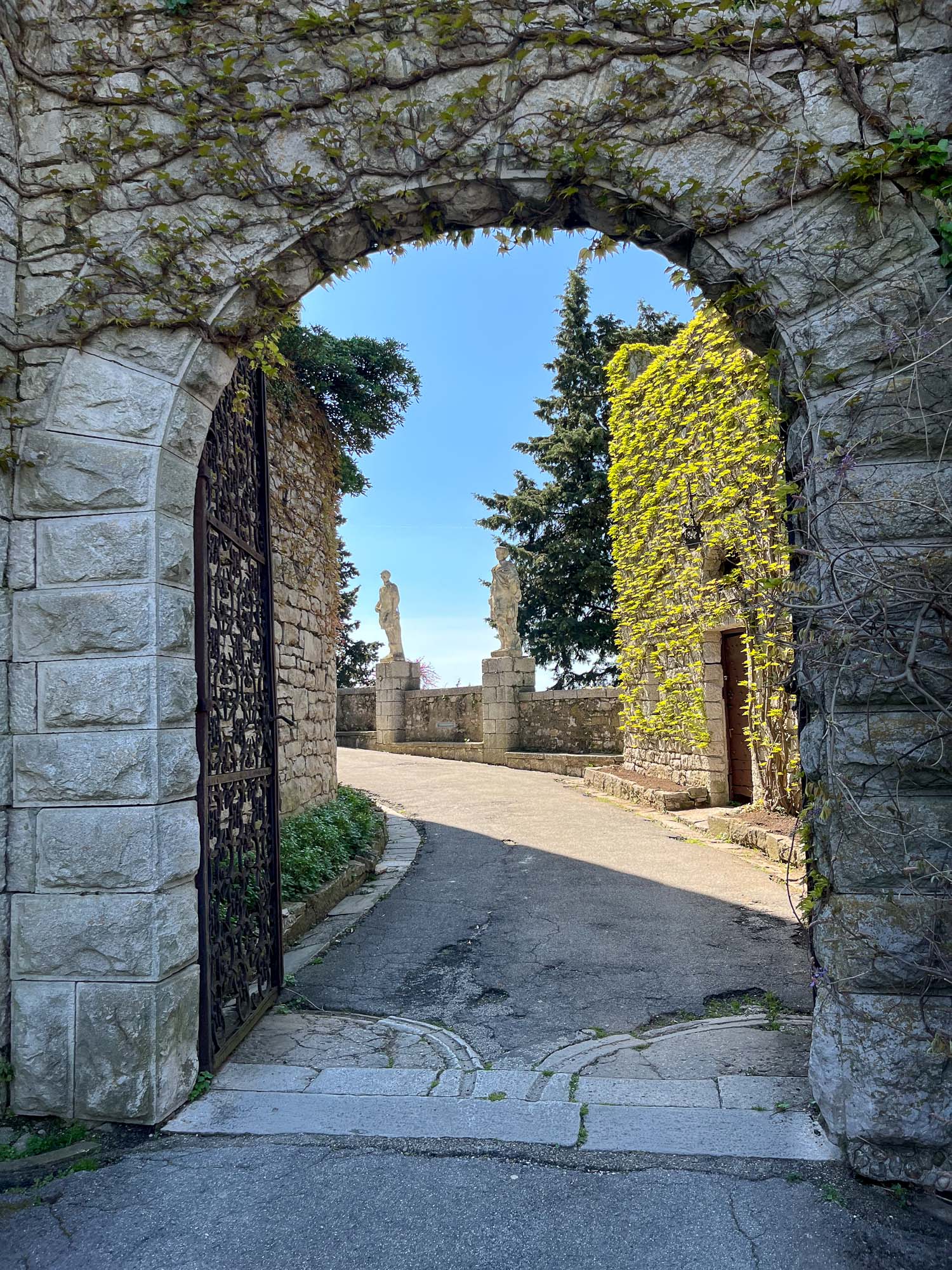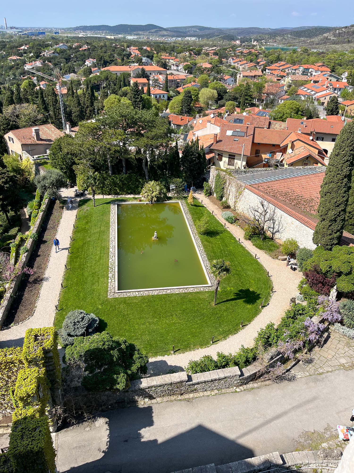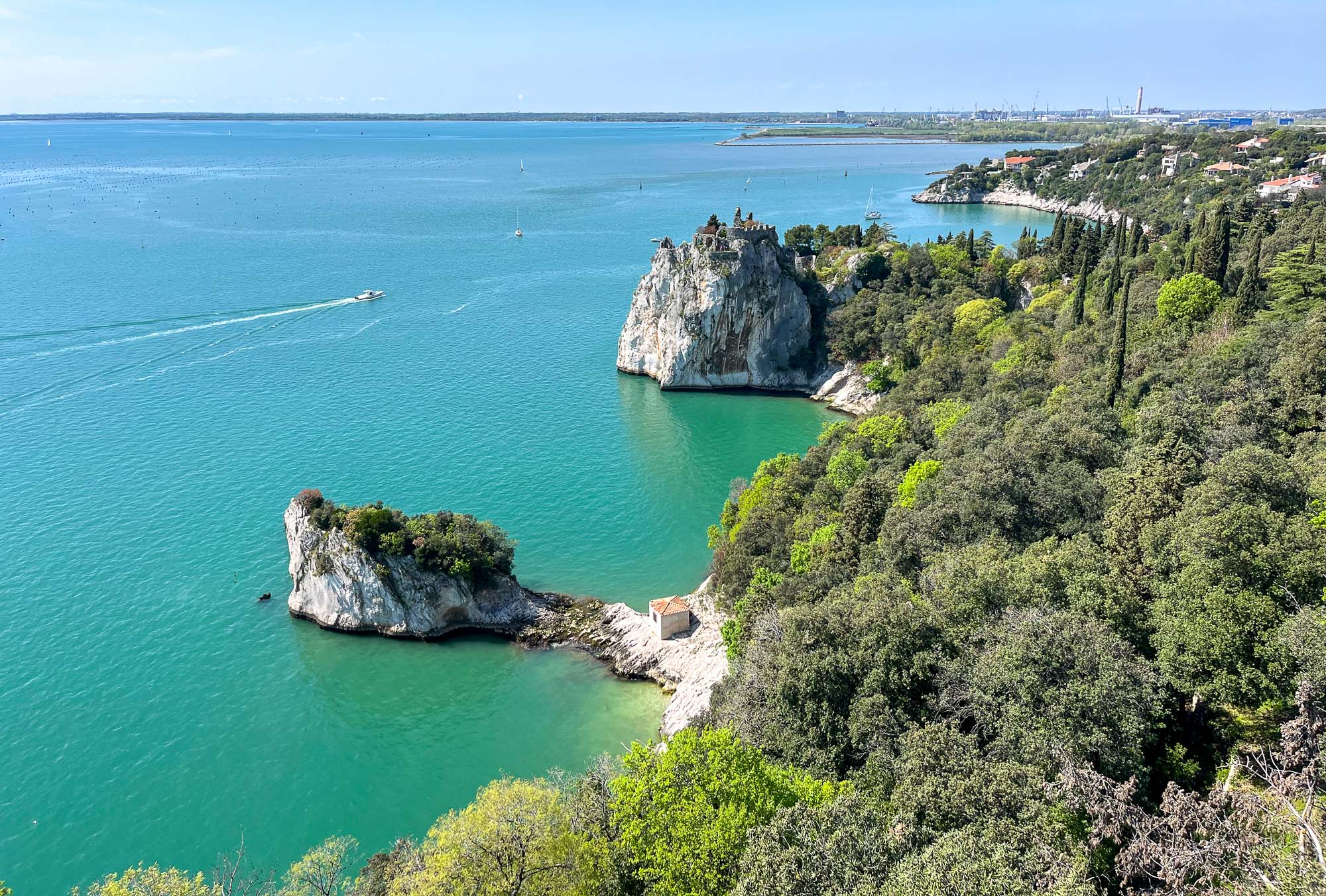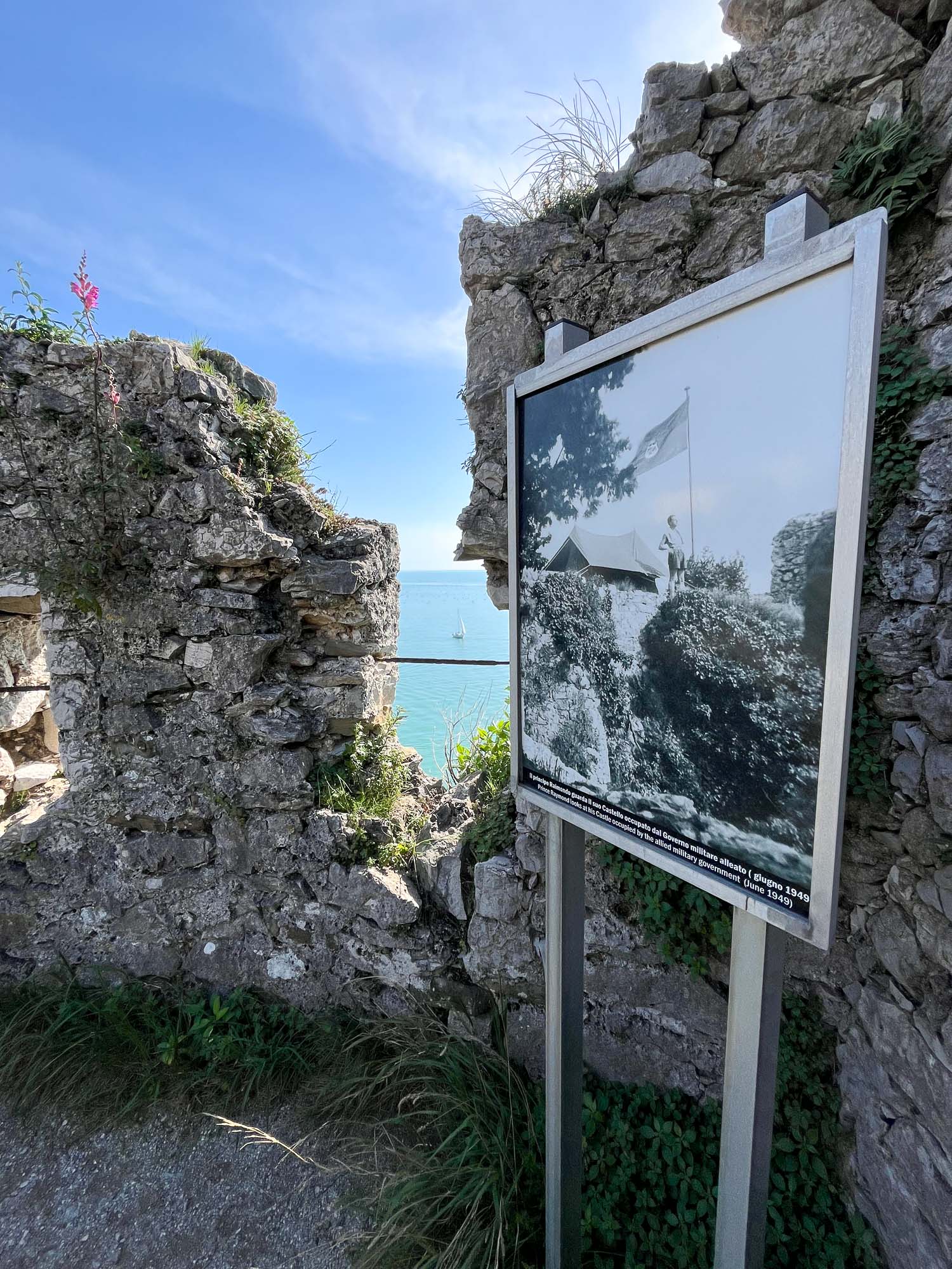 V bližini so tudi ruševine starega devinskega gradu, katera nastanek sega v 11. stoletje. Do gradu je vodila ena sama težko prehodna utrjena pot, speljana vzdolž obzidja. V 14 stoletju je bila utrdba povezana z oglejskimi patriarhi iz družine della Torre, ki so začeli tudi graditi nov grad na rimskih ruševinah. Danes so tukaj več ali manj samo ruševine, saj naj bi ga v 14. stoletju porušili turki, graščaki pa so se dokončno preselili v novi devinski grad. Po eni teoriji naj bi bil ta grad namenjen čaščenju boga Sonca in se ga, romantično, imenuje tudi Bela dama… No, ima pa ta Bela dama tudi drugačno legendo, ki je povezana z graščakinjo, ki jo je ljubosumni mož pahni skozi okno v morje. Padla je na skale, okamenela, njen duh pa naj bi se še danes vračal v grad. In se ta skala imenuje Bela dama.