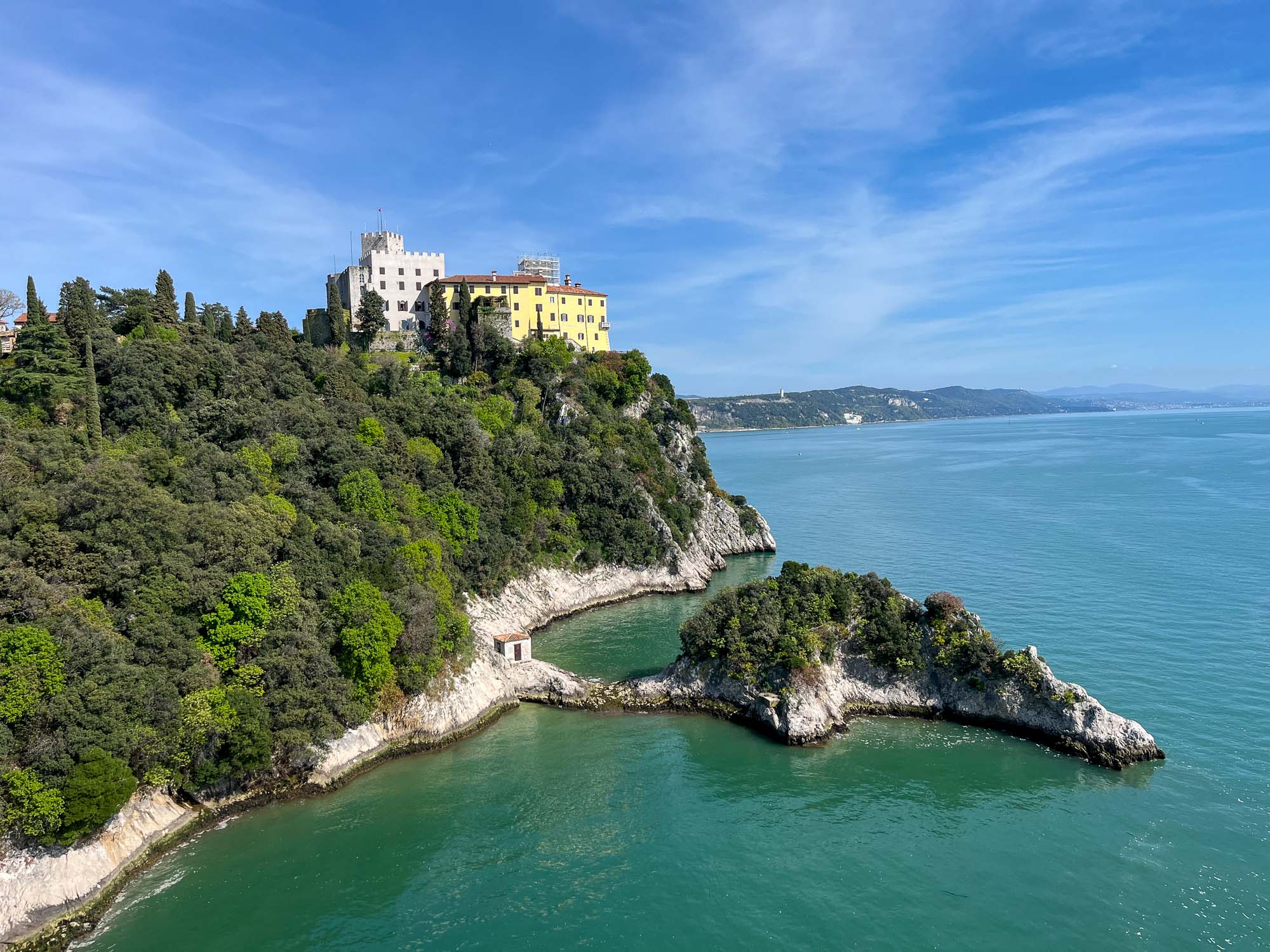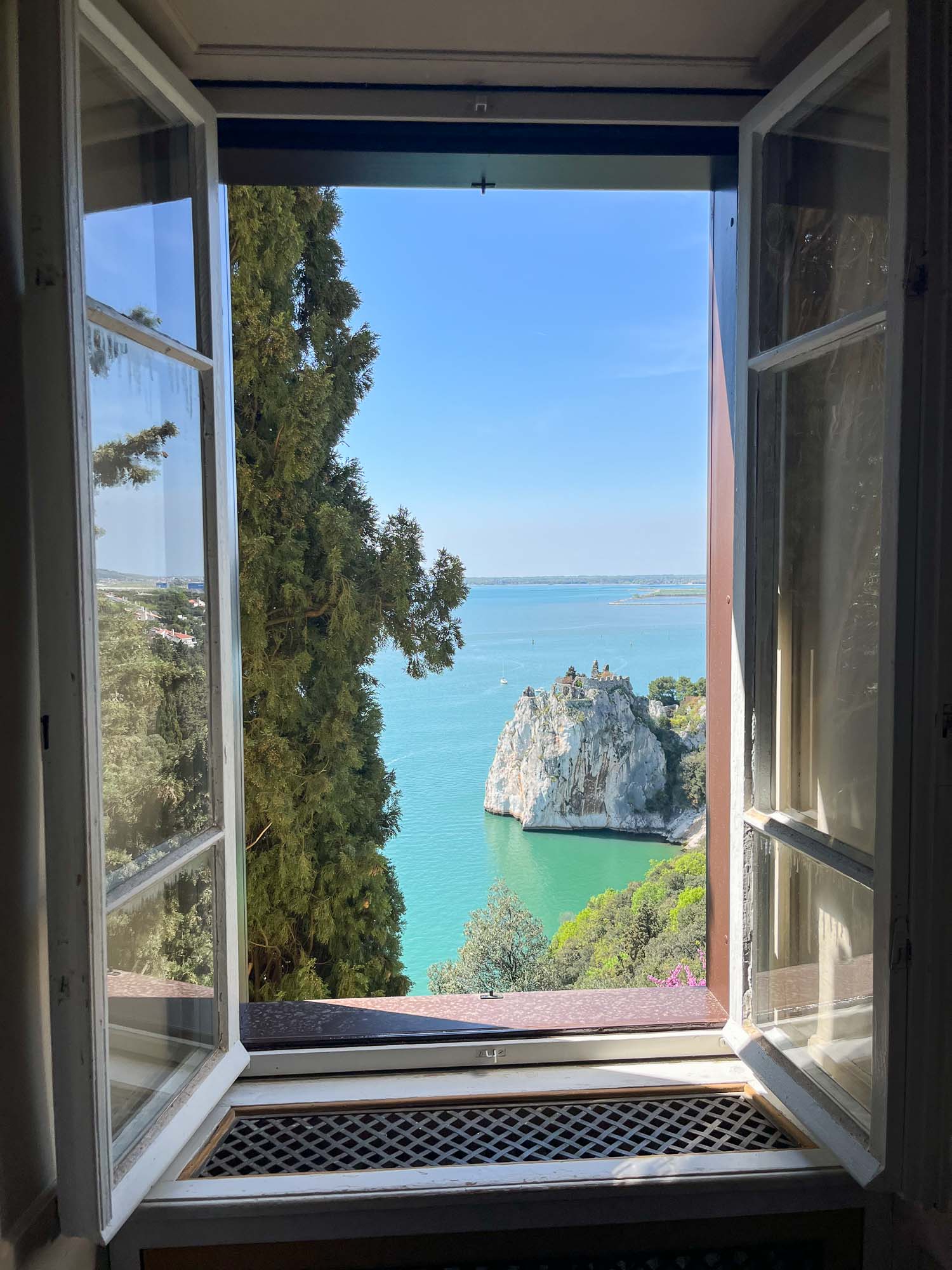Devinski grad (castello di Duino) se nahaja na obali tržaškega zaliva med Tržičem (Monfalcone) in Trstom. Grad je nastal v 14. stoletju na ruševinah rimske vojaške postojanke. Lokacija je seveda strateška z odličnimi razgledi, visoko na pečinah nad tržaškim zalivom.