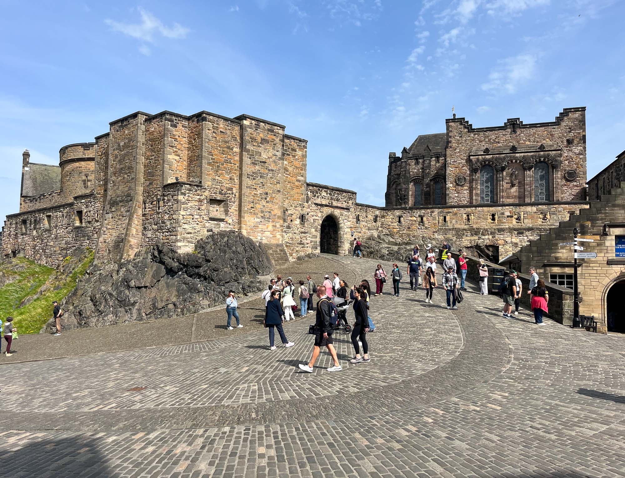 Edinburški grad (Edinburgh Castle) je osrednji simbol mesta in eden najbolj obiskanih zgodovinskih krajev v Veliki Britaniji. Stoji na Castle Rocku, kjer je bila prva utrdba postavljena že v 2. stoletju, najstarejši še stoječi del gradu pa je kapela sv. Margarete iz 12. stoletja, ki velja tudi za najstarejšo stavbo v mestu. Grad skozi stoletja ni služil samo kot kraljeva rezidenca, ampak tudi kot vojaška utrdba, zakladnica in celo zapor. V njem se zrcali celotna zgodovina Škotske – od kraljev in bitk do angleško-škotskih vojn in političnih spletk. Grad je bil večkrat oblegan in je bil prizorišče številnih ključnih dogodkov v škotski zgodovini, vključno z vojnami za neodvisnost, v katerih je igral pomembno vlogo.