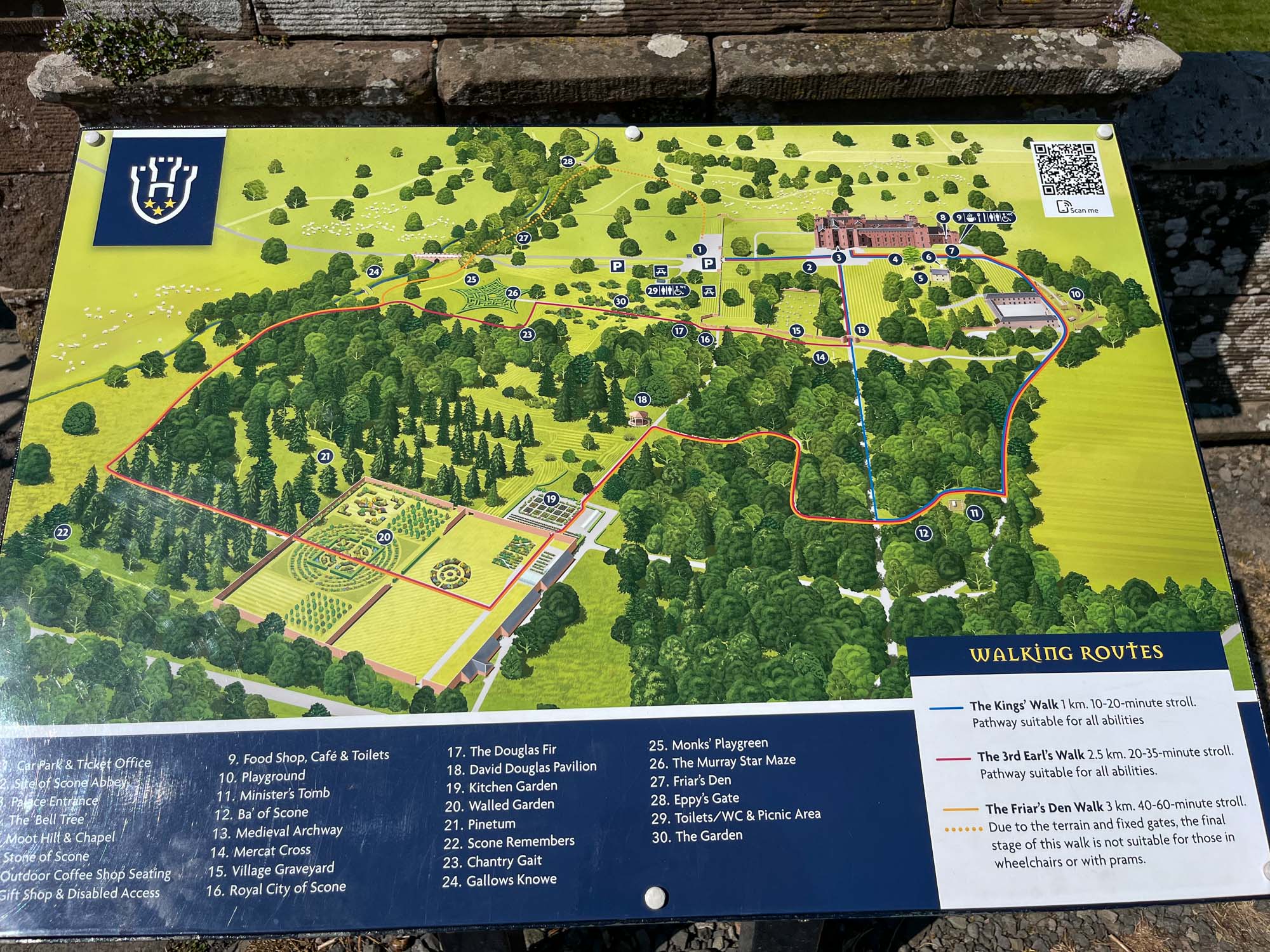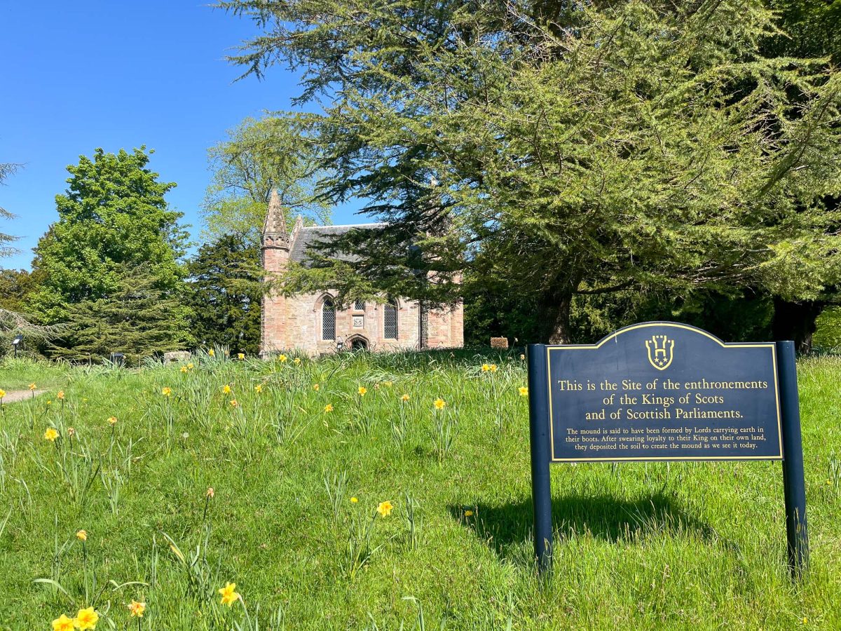 Poleg palače pa je tudi starodavni Moot Hill, griček pred palačo, kjer naj bi potekale kronanja škotskih kraljev. Tam je stal tudi kamen Scone (Stone of Scone, aka Stone of Destiny), simbol kraljeve oblasti. Scone Palace je zato predvsem duhovno in zgodovinsko srce škotske monarhije.