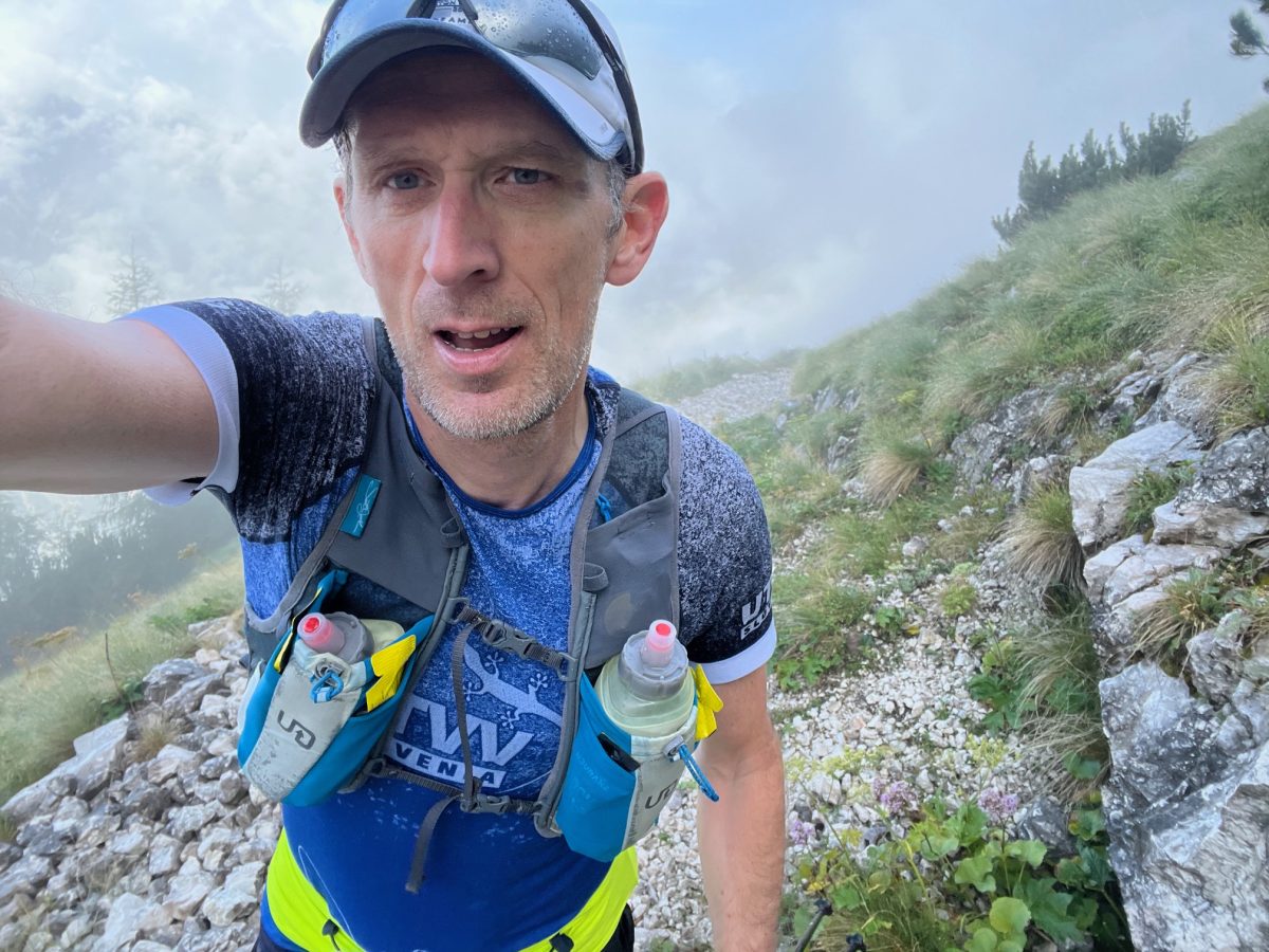 Čudovita pokrajina, le vreme ni sodelovalo za razglede. Tekel sem precej počasneje, kot sem upal, ampak vesel sem, da sem prišel do cilja. Iskreno, hitro tekanje po zelo tehničnih in mokrih spustih mi ne gre, recimo da sem zato prestar, saj se bojim morebitnih padcev (in predvsem njihovih posledic).