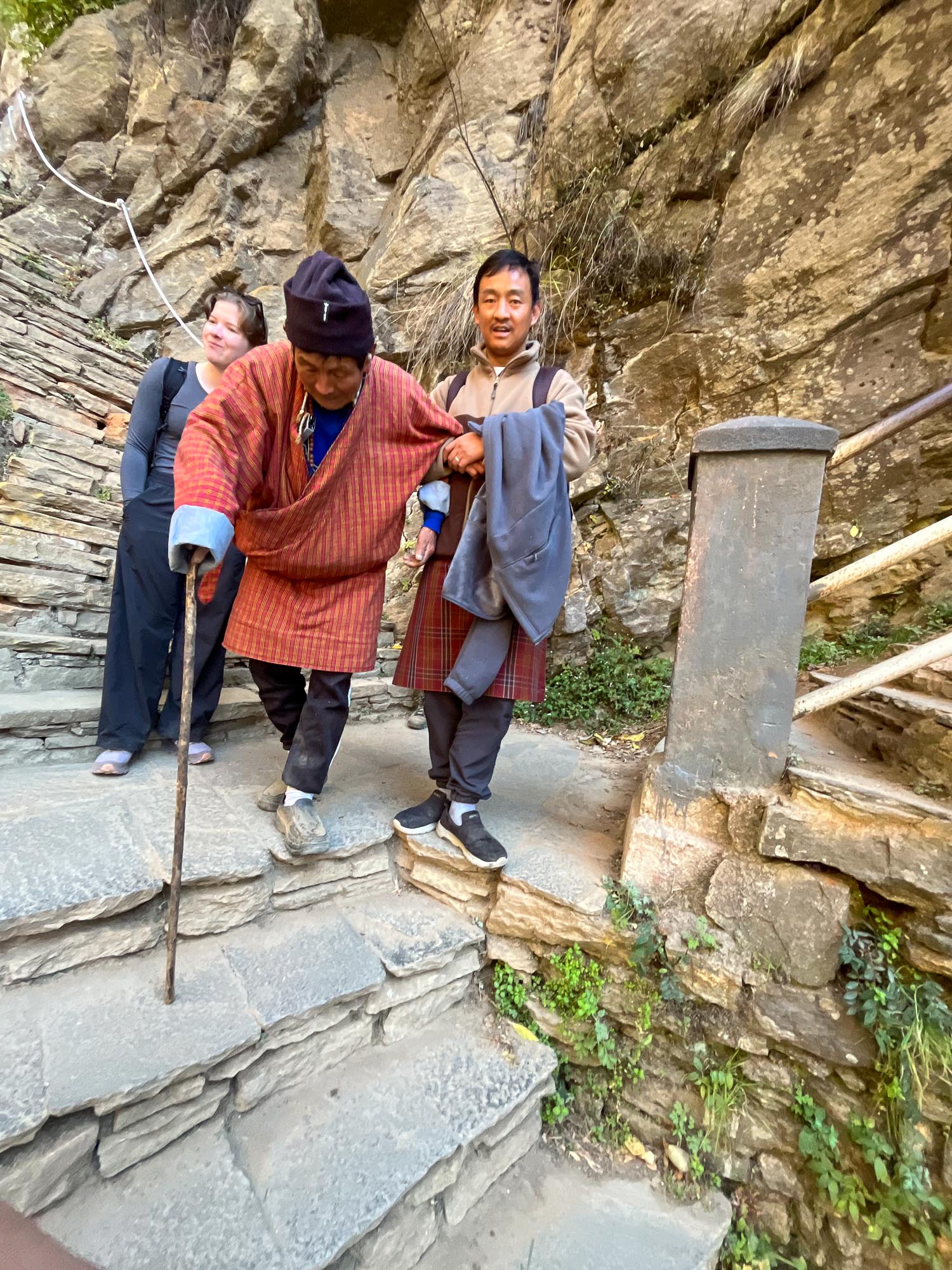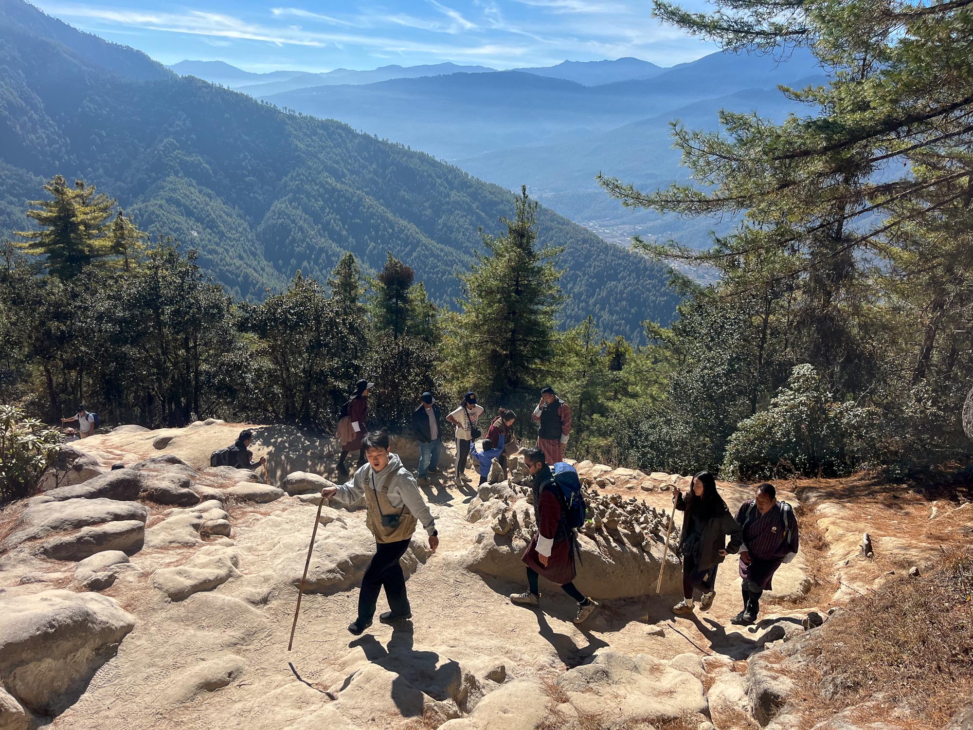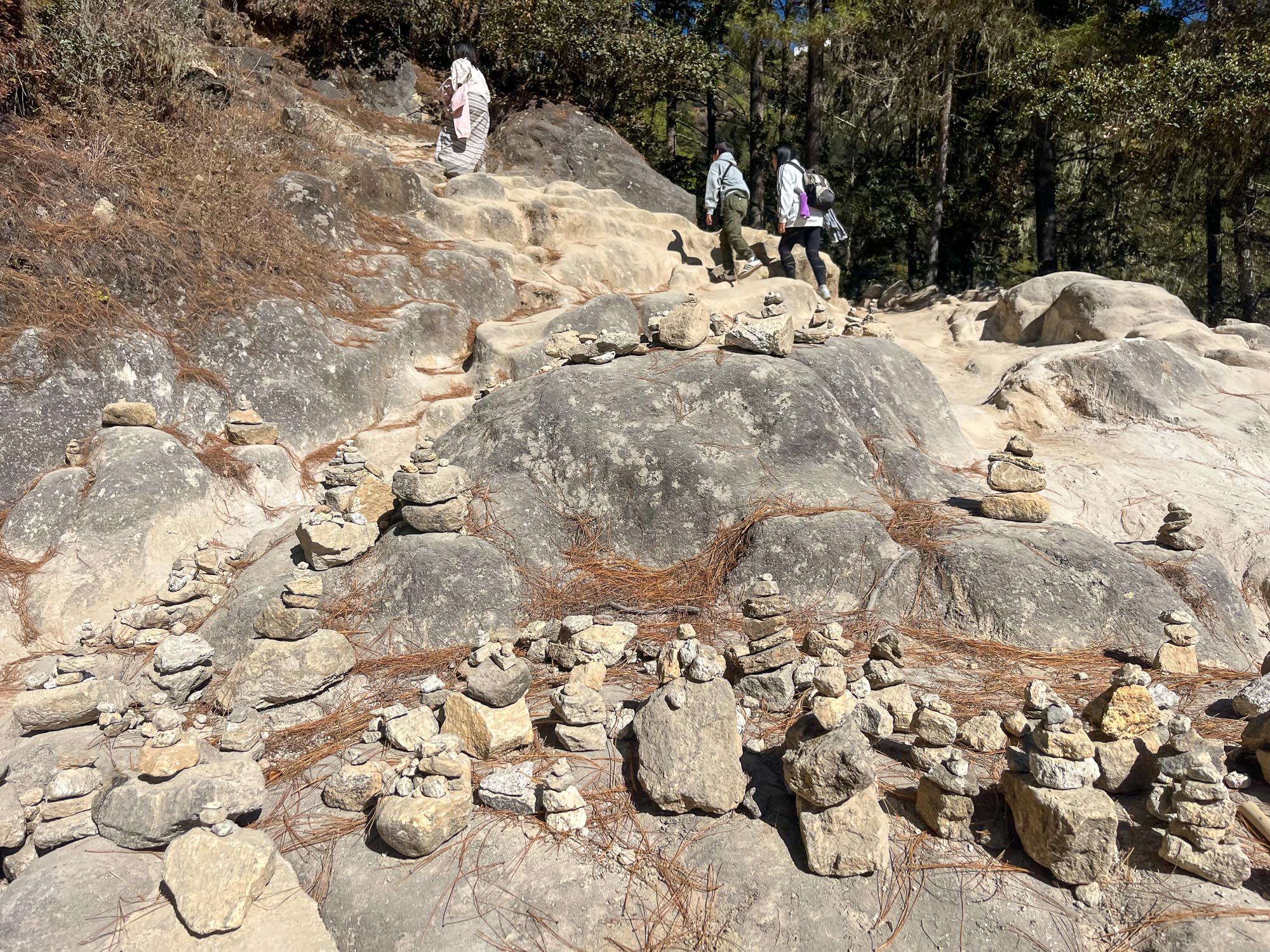 At the start of the trail, horses are waiting, and those less prepared can cover the first part on horseback. For most of the way, hikers and riders share the same path, so occasional bottlenecks form (and yes, i was walking fast and stopping too often for a photo). I don’t even want to imagine what it’s like here during peak season. I especially admire the horse guides—interestingly, at least at the time of my visit, most were women, the owners of the horses, who earn extra income this way. The ride costs 1,500 Bhutanese ngultrum (around 15 euros). They walk fast and make this trip at least once a day.