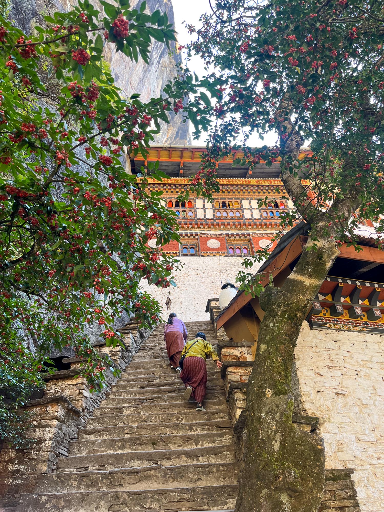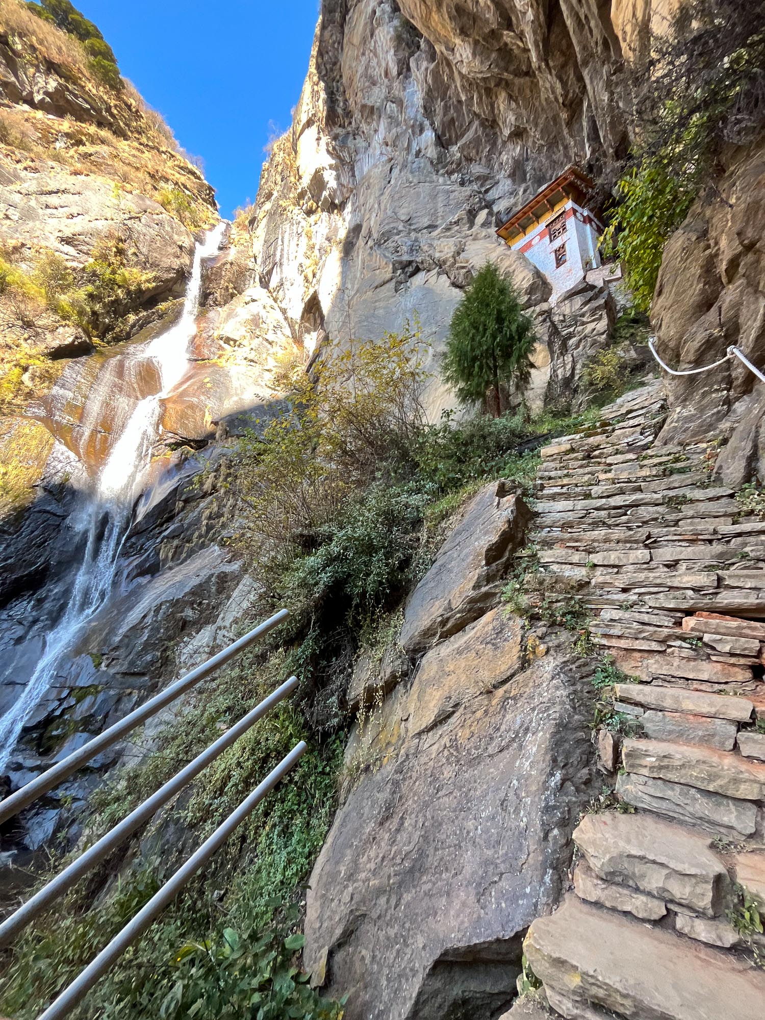 In short, the Tiger’s Nest is a Bhutanese “must-do.” The hike alone is a wonderful experience, with beautiful scenery and nature, especially on a clear day. If I had the chance to go again, I would almost prefer a midday or afternoon visit, as during our morning ascent the sun was always “behind” the temple. Seeing the monastery at sunset must be truly magical. Not to mention how it would look in snow—although snowy days are very rare here. Winters are cold but mostly dry; most rain and snow fall during the monsoon season. Taktsang is a place where the landscape, the path, and spirituality blend into a beautiful experience that stays in the memory for a long time.