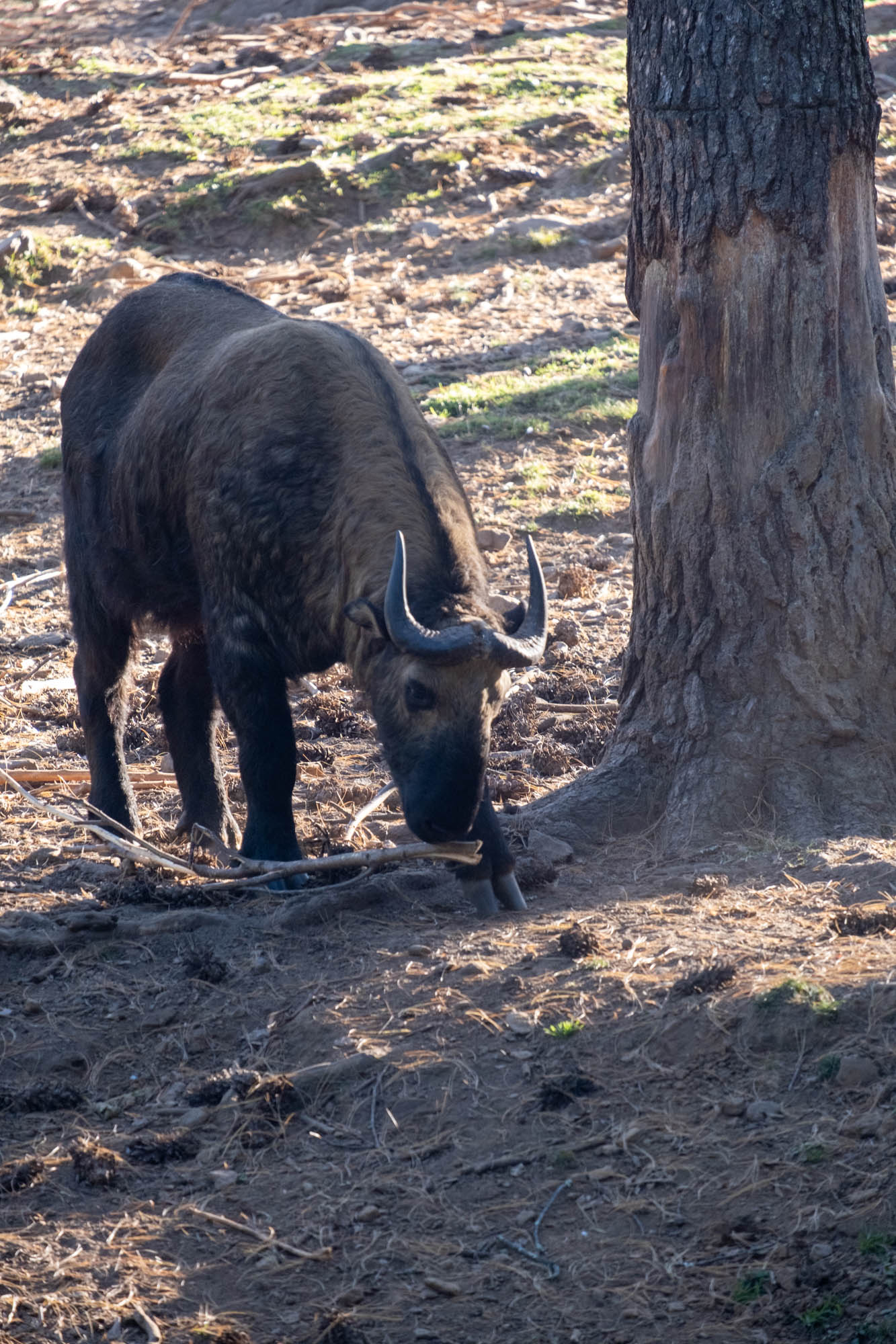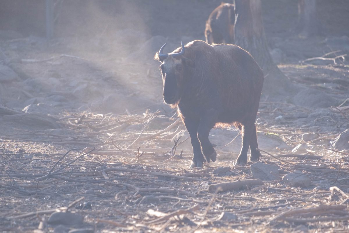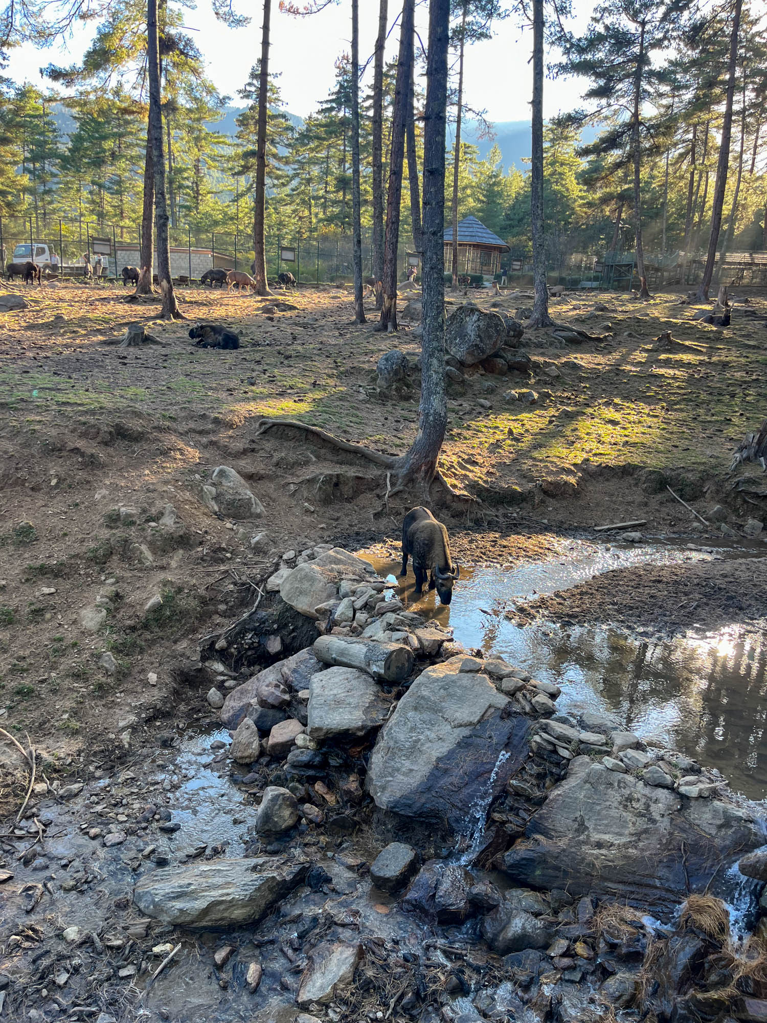And yes, Royal Takin Reserve is one of the more unusual, yet charming stops in Thimphu. It’s a small animal reserve on a hillside above the city, home to the takin—Bhutan’s national animal, which is truly something special. At first glance it looks like a mix between a goat and an African wildebeest, with a huge nose and a completely “prehistoric” expression. And of course, there’s a story behind it too: according to legend, the takin was created by the Buddhist saint Drukpa Kunley, also known as the “Divine Madman,” who came from Tibet. After a feast, he supposedly combined the head of a goat with the body of a cow—and voilà, the takin was born. The reserve used to be a small zoo, but today it’s more of an open space where the animals live in a fairly natural environment, surrounded by forest and bamboo. Besides takins, there are also a few deer and other animals wandering around, but the takin is obviously the star of the show.